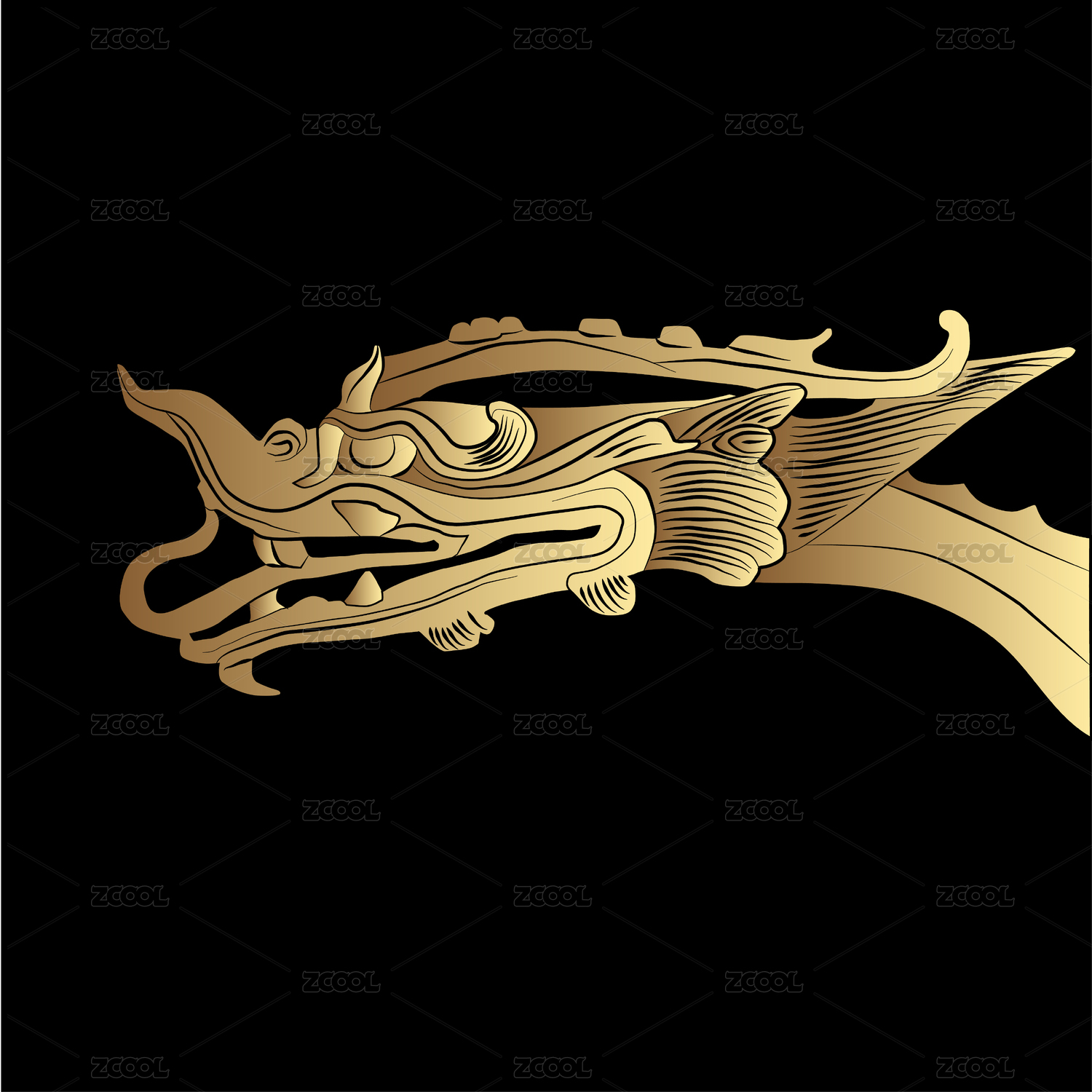 國潮古董唐朝銅龍舞龍御龍矢量龍頭手繪線稿