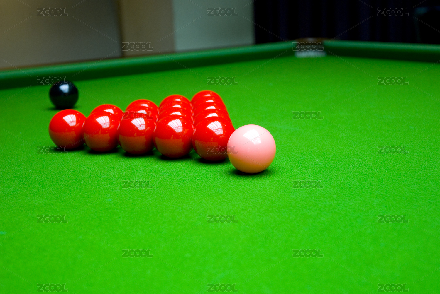 球房?jī)?nèi)的一張斯諾克球桌和臺(tái)球