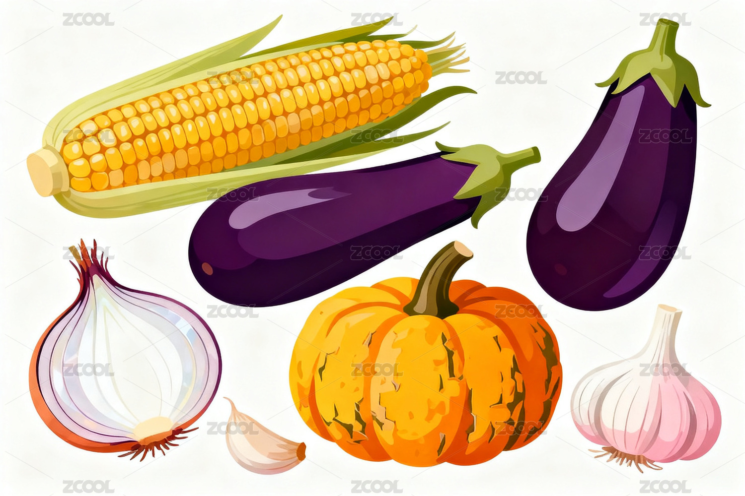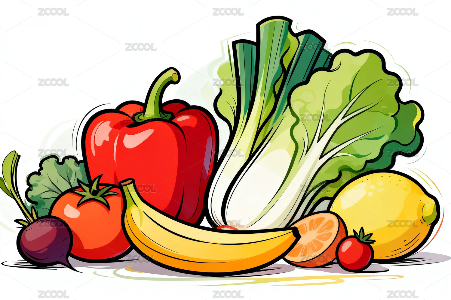 搞怪表情可愛蔬菜水果組合卡通插畫