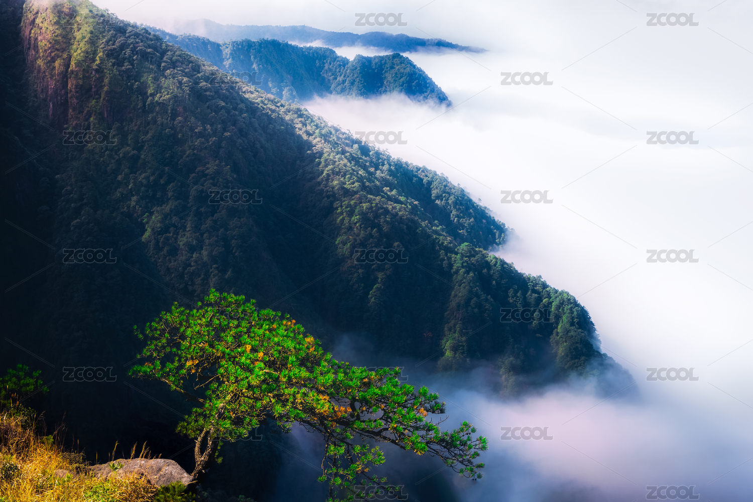 中國湖南永州小黃山飛仙源云海上的迎客松