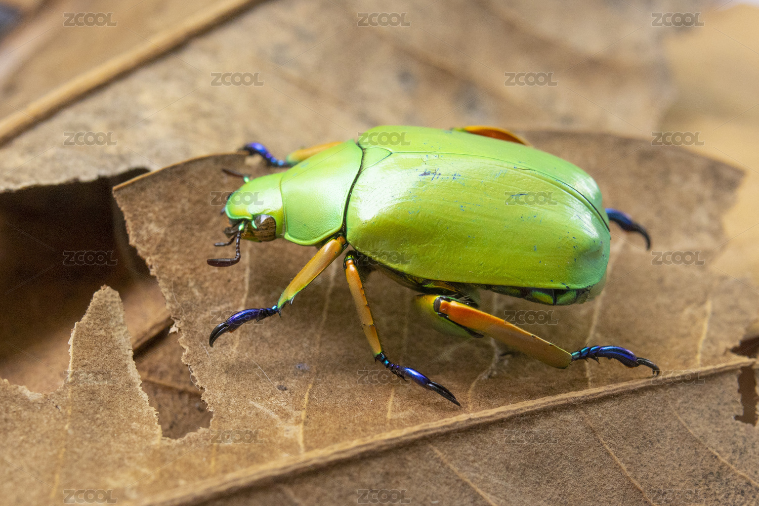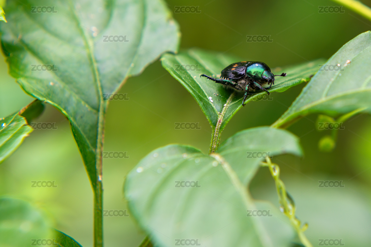 葉上昆蟲特寫鏡頭 金龜科弧麗金龜屬動(dòng)物