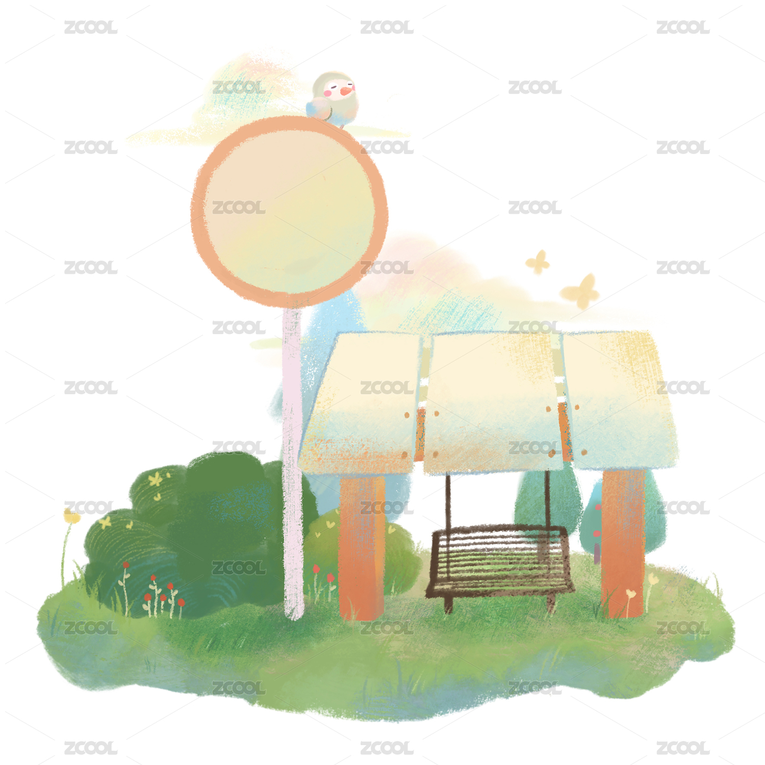 春天的車站元素