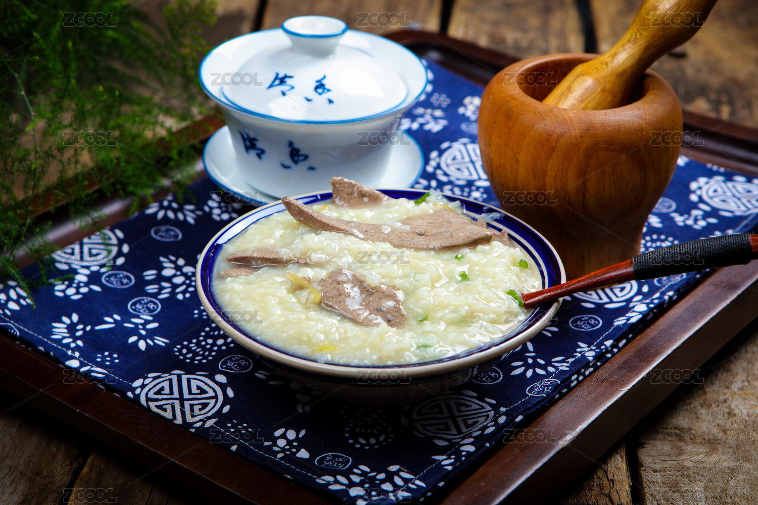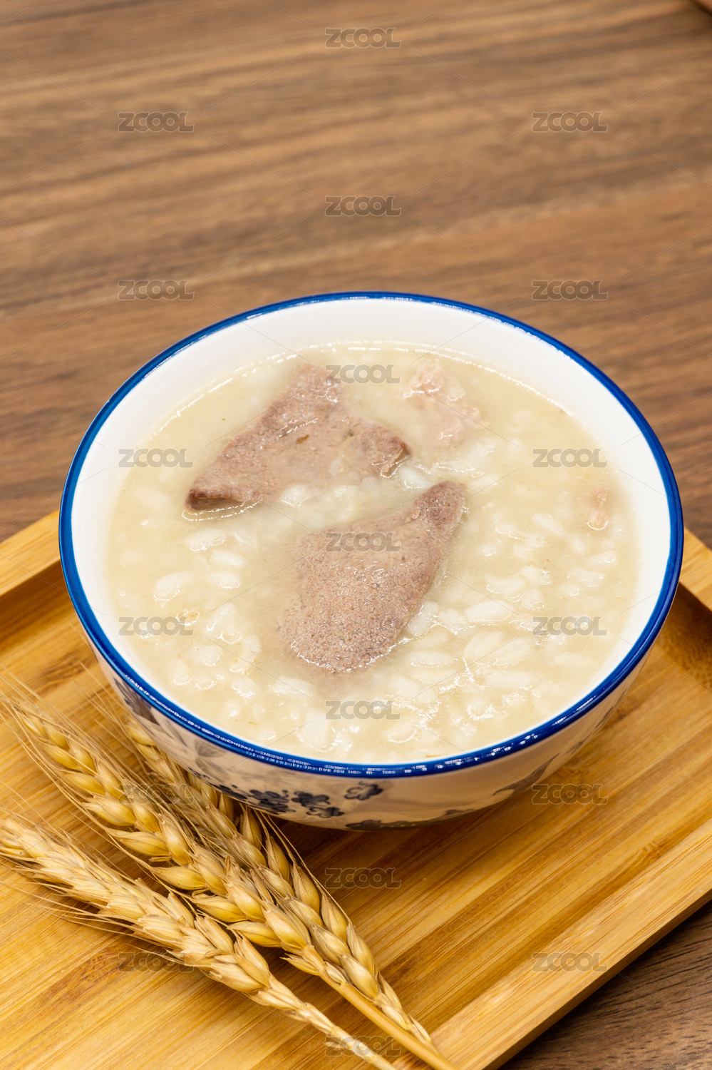 木桌背景一碗養(yǎng)生豬肝粥特寫