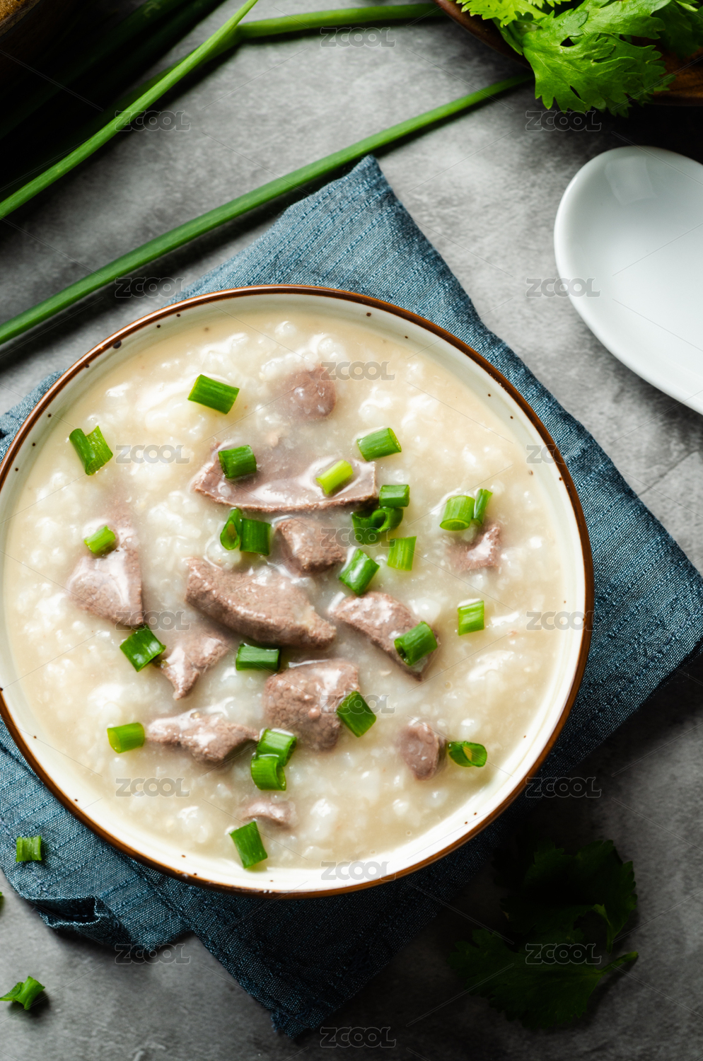 白背景一碗養(yǎng)生豬肝粥特寫