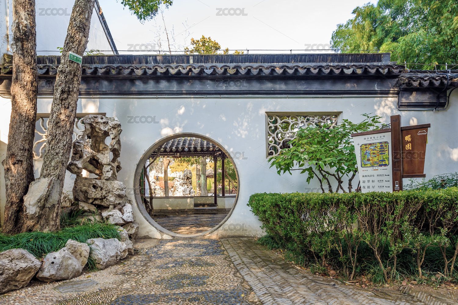 中國江蘇省南京市瞻園園林月門漏花窗墻