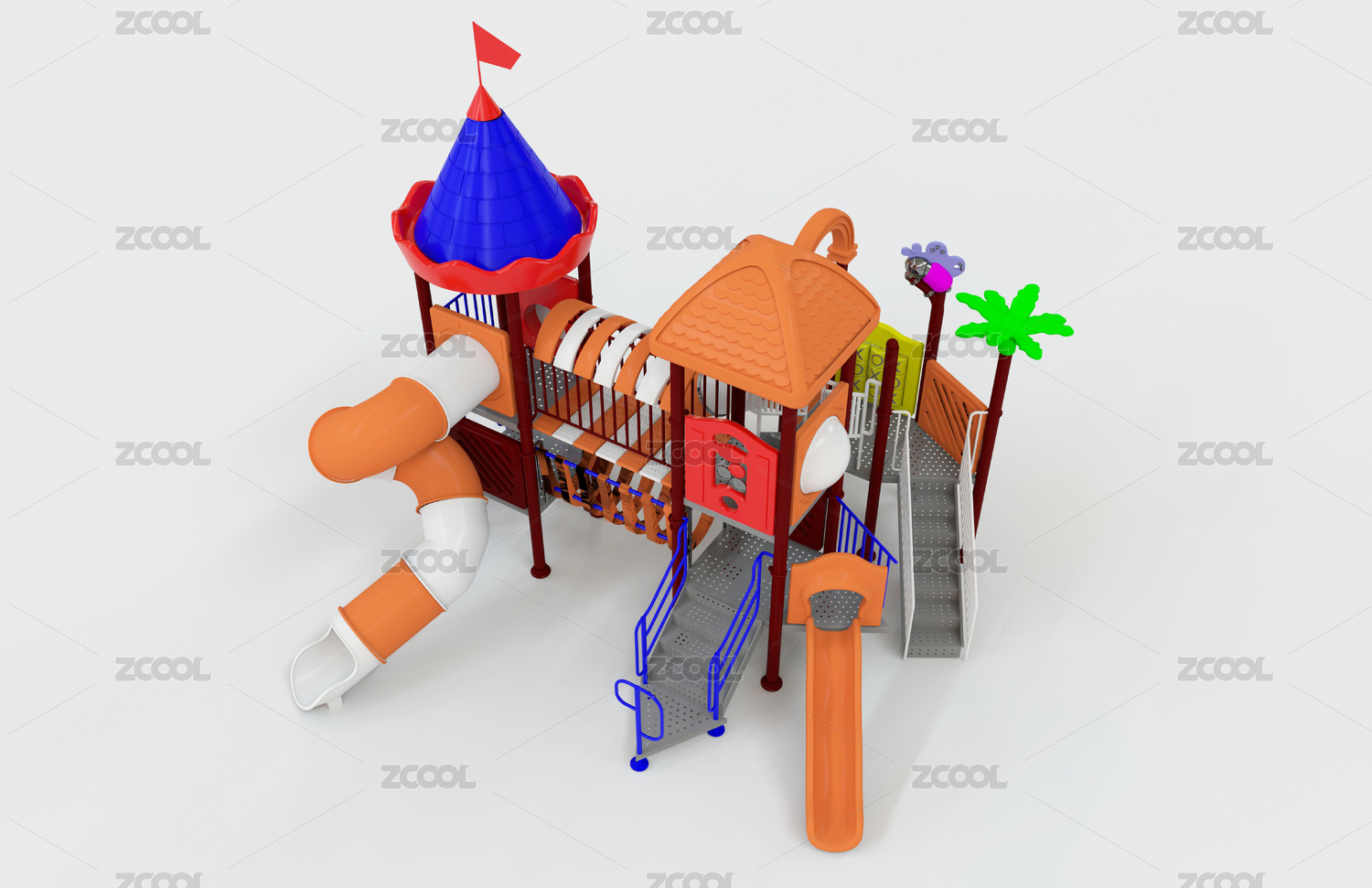 白色背景游上的兒童滑梯