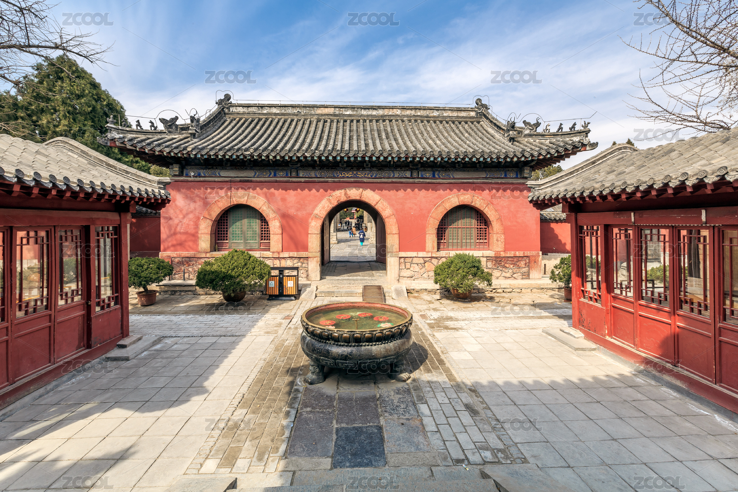 中國山東省泰安市岱廟遙參亭拱形門洞后的垂花門