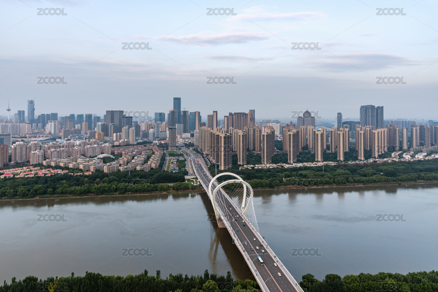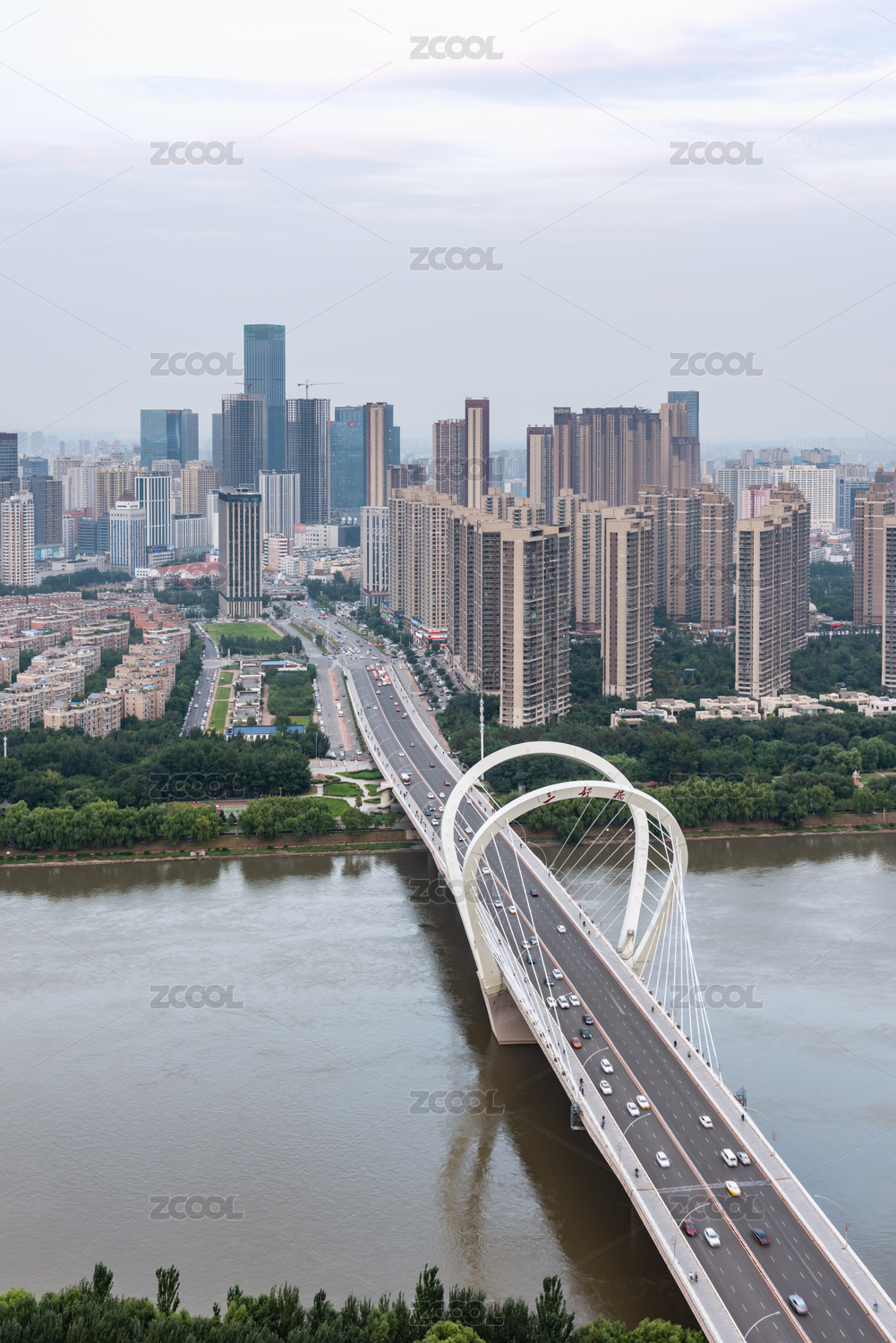 俯瞰中國(guó)遼寧沈陽(yáng)渾河沿岸和三好橋