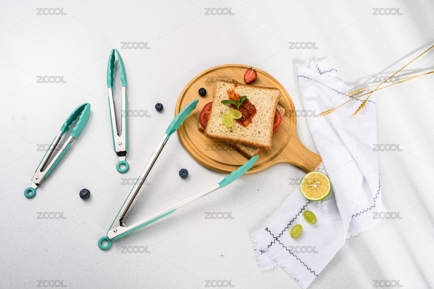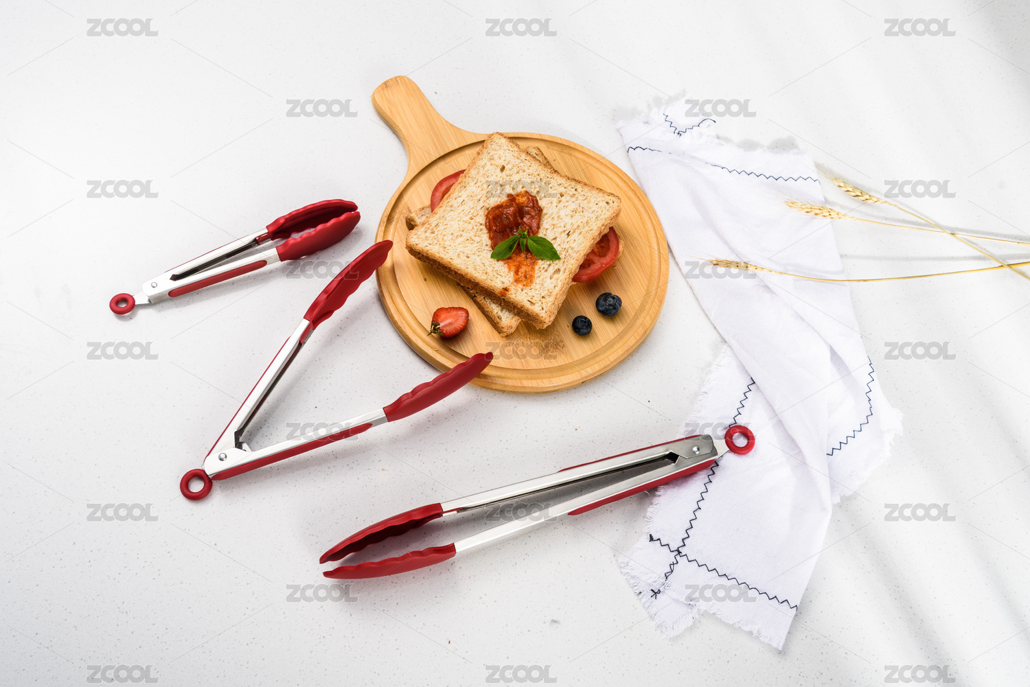 石英石臺(tái)面上的硅膠食品夾與面包