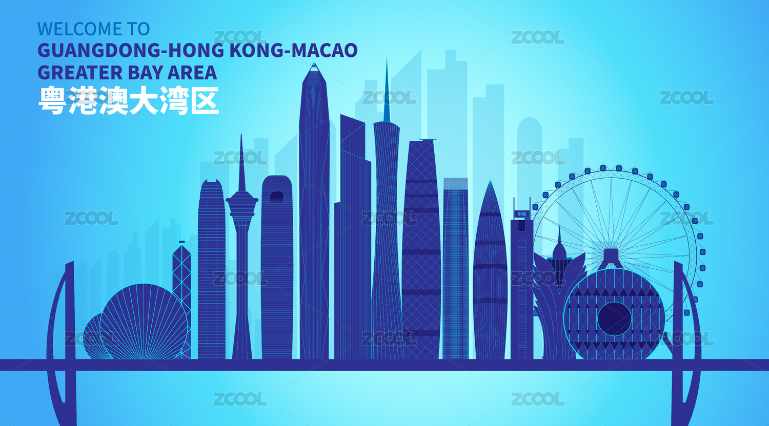 中國廣東省粵港澳大灣區(qū)天際線建筑矢量插圖