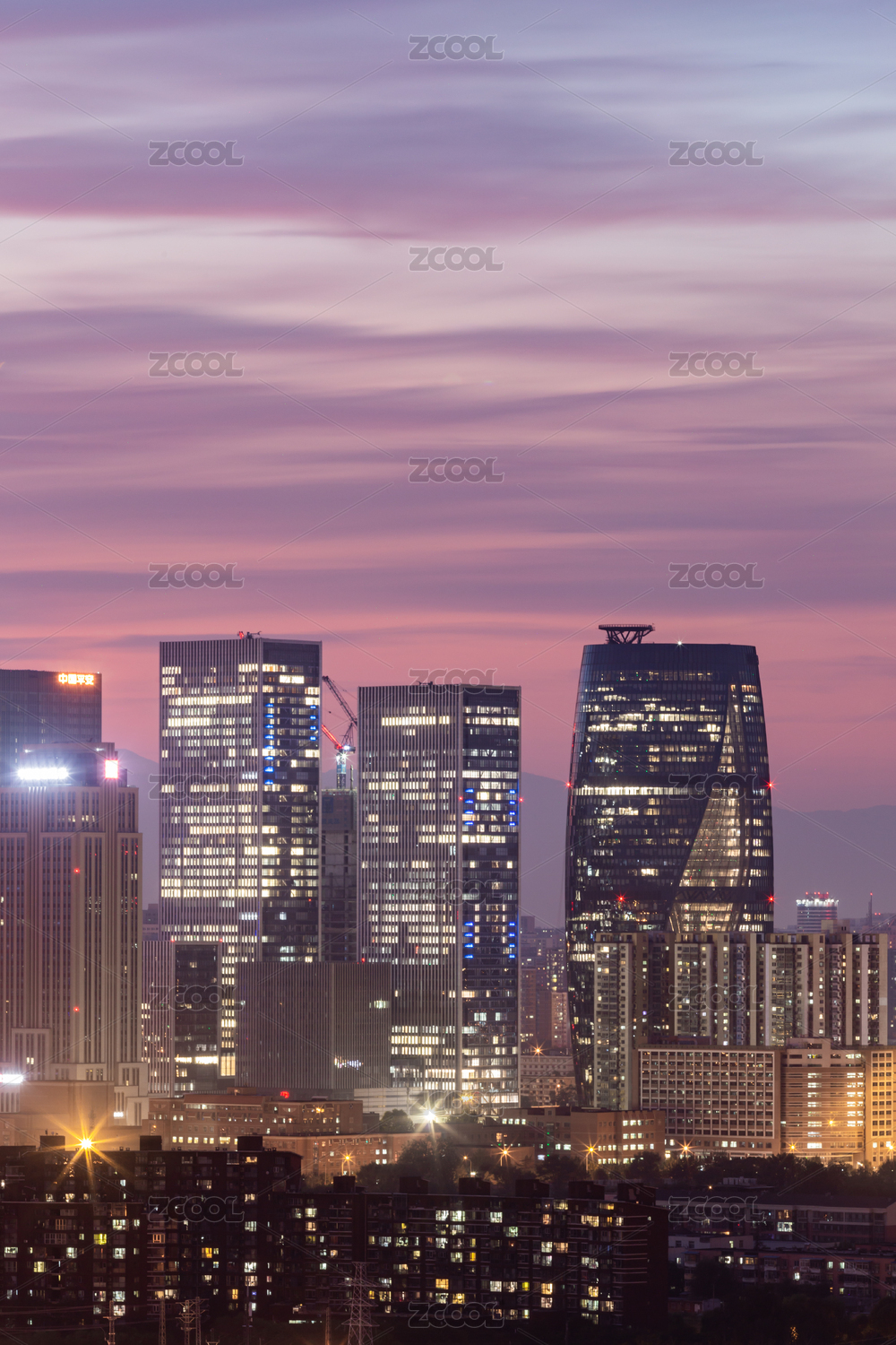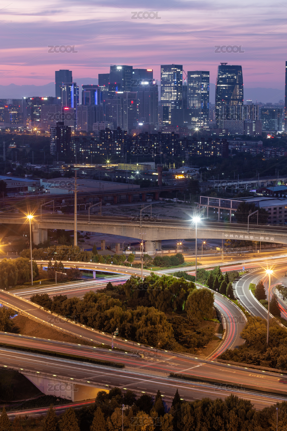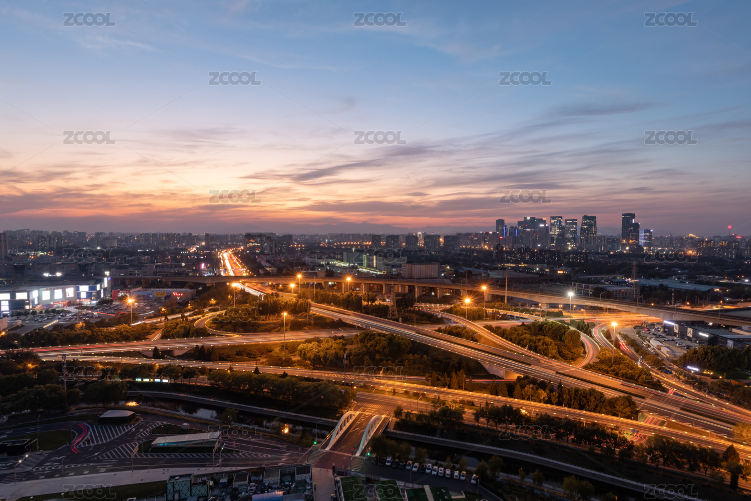 中國北京麗澤商務區(qū)玉泉營橋日落晚霞夜景