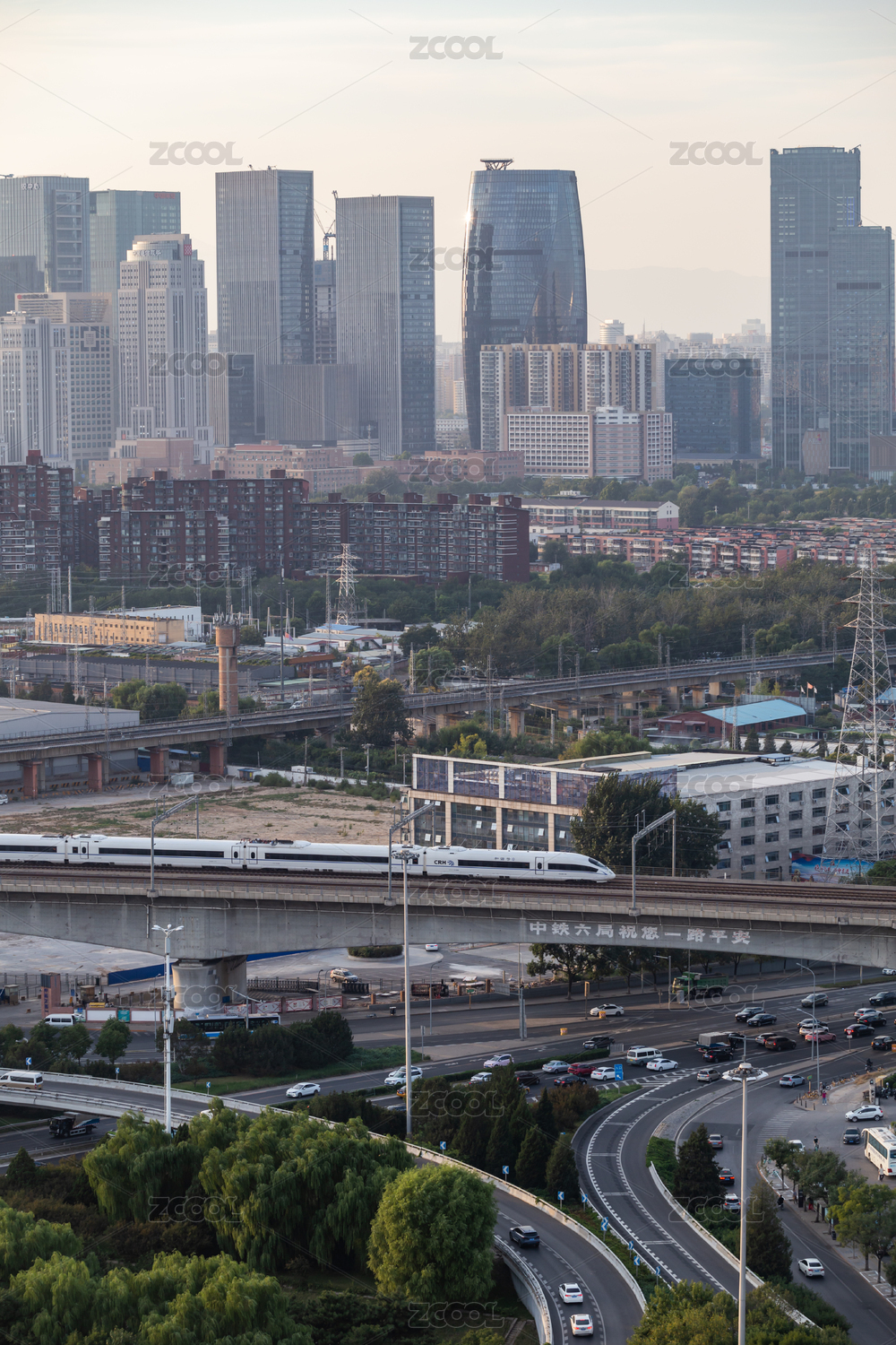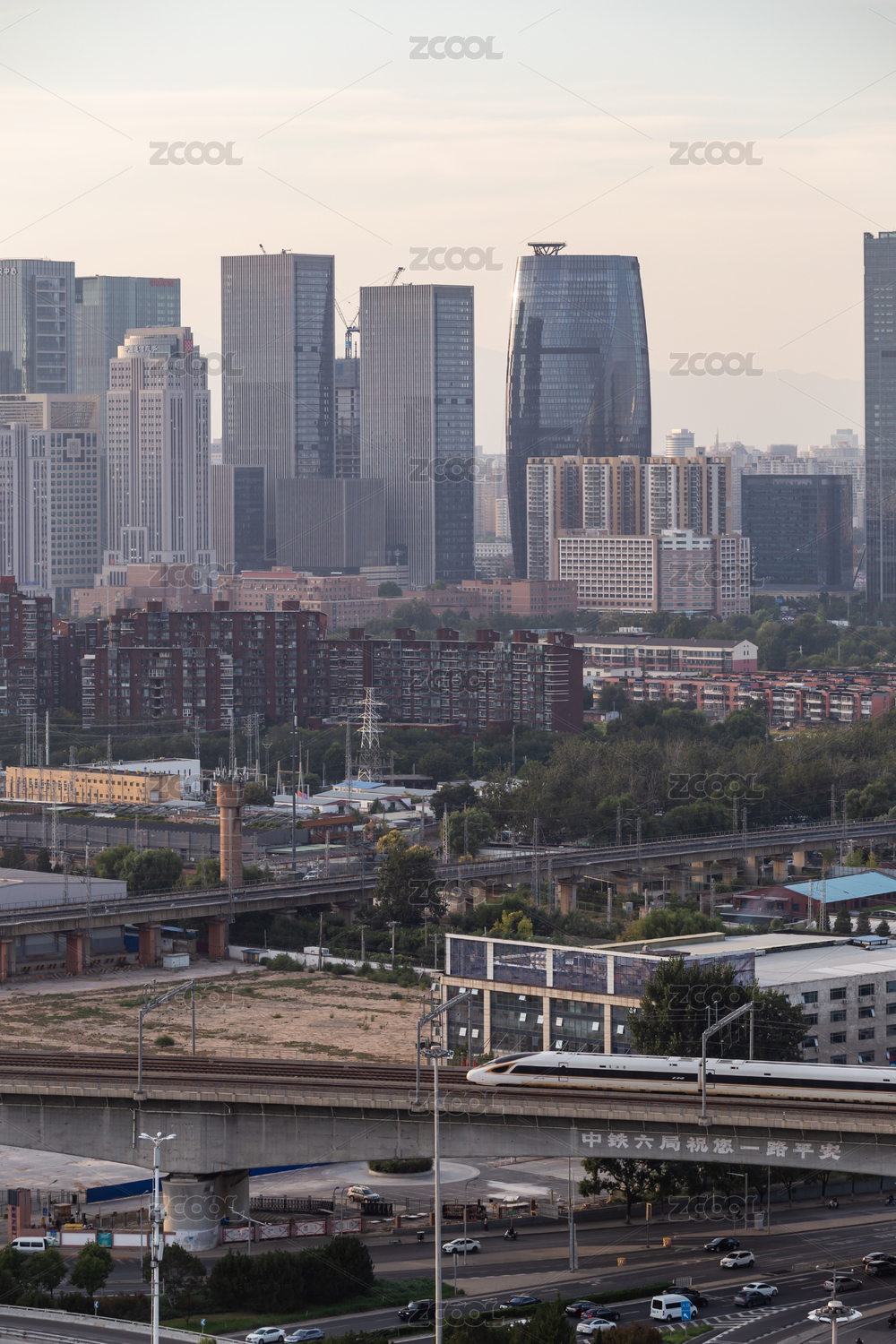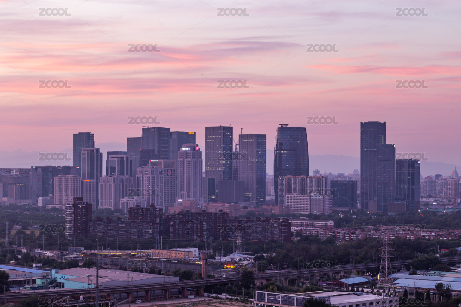 中國北京麗澤商務區(qū)玉泉營橋日落晚霞夜景