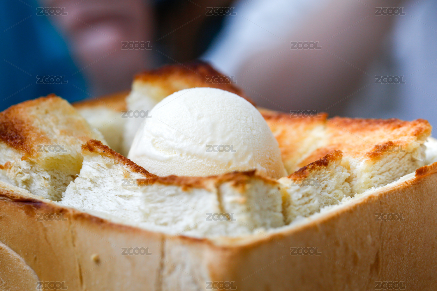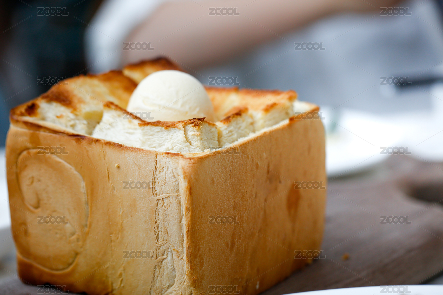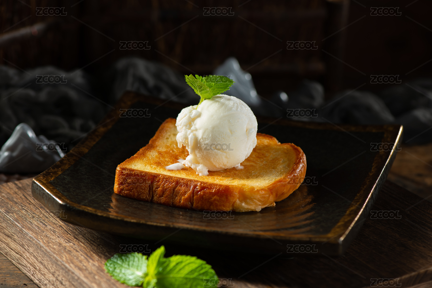 香草冰淇淋配烤面包的美味甜點(diǎn)