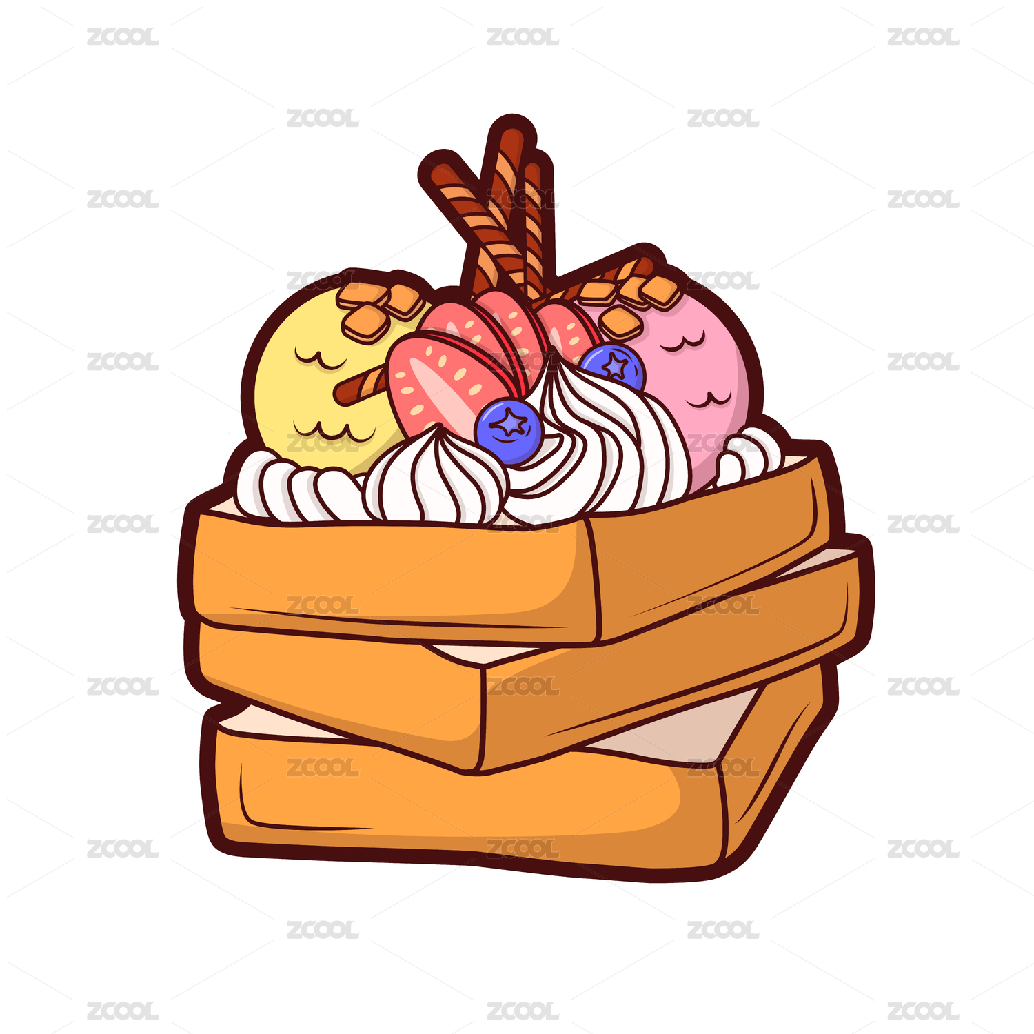 矢量文創(chuàng)元素叉子面包荷包蛋冰淇淋