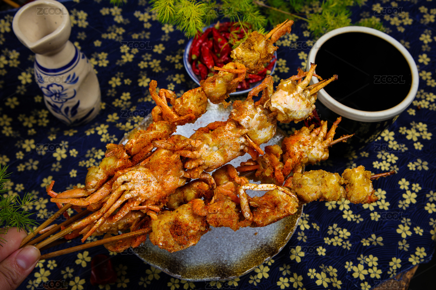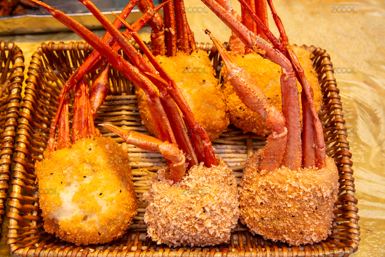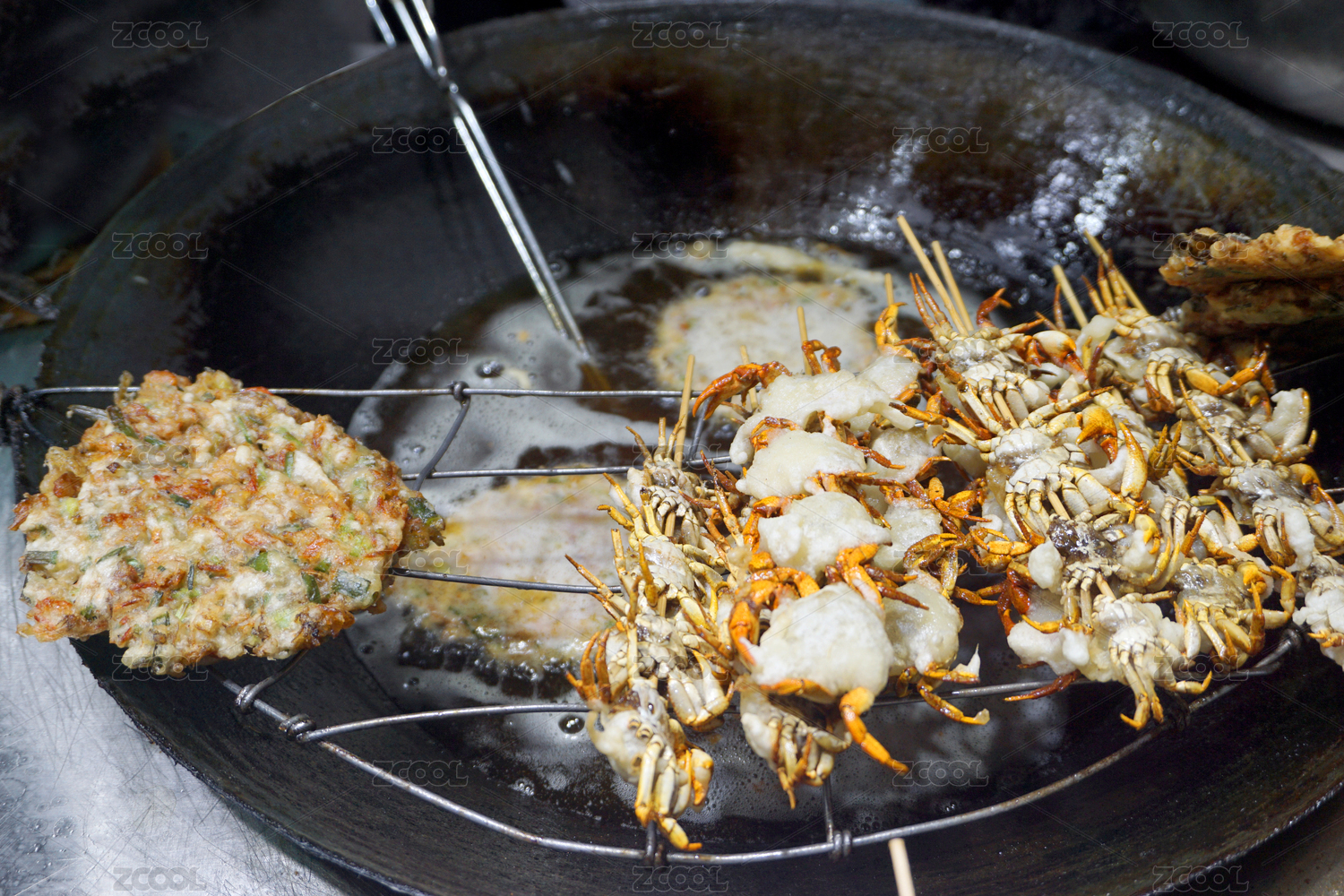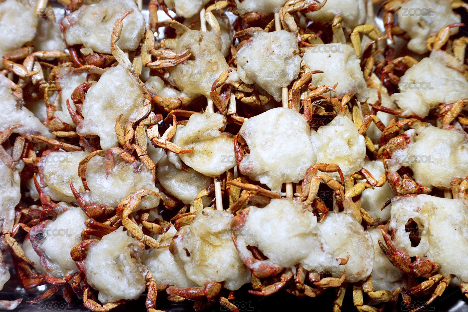 湖南湘西鳳凰古城小吃油炸螃蟹和蝦餅