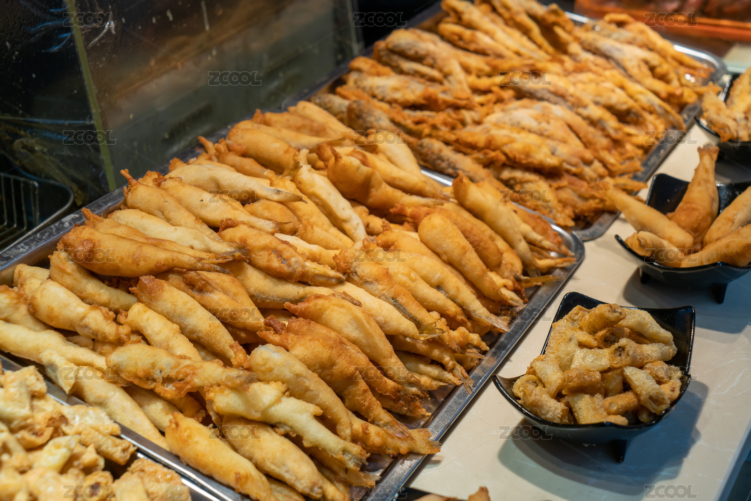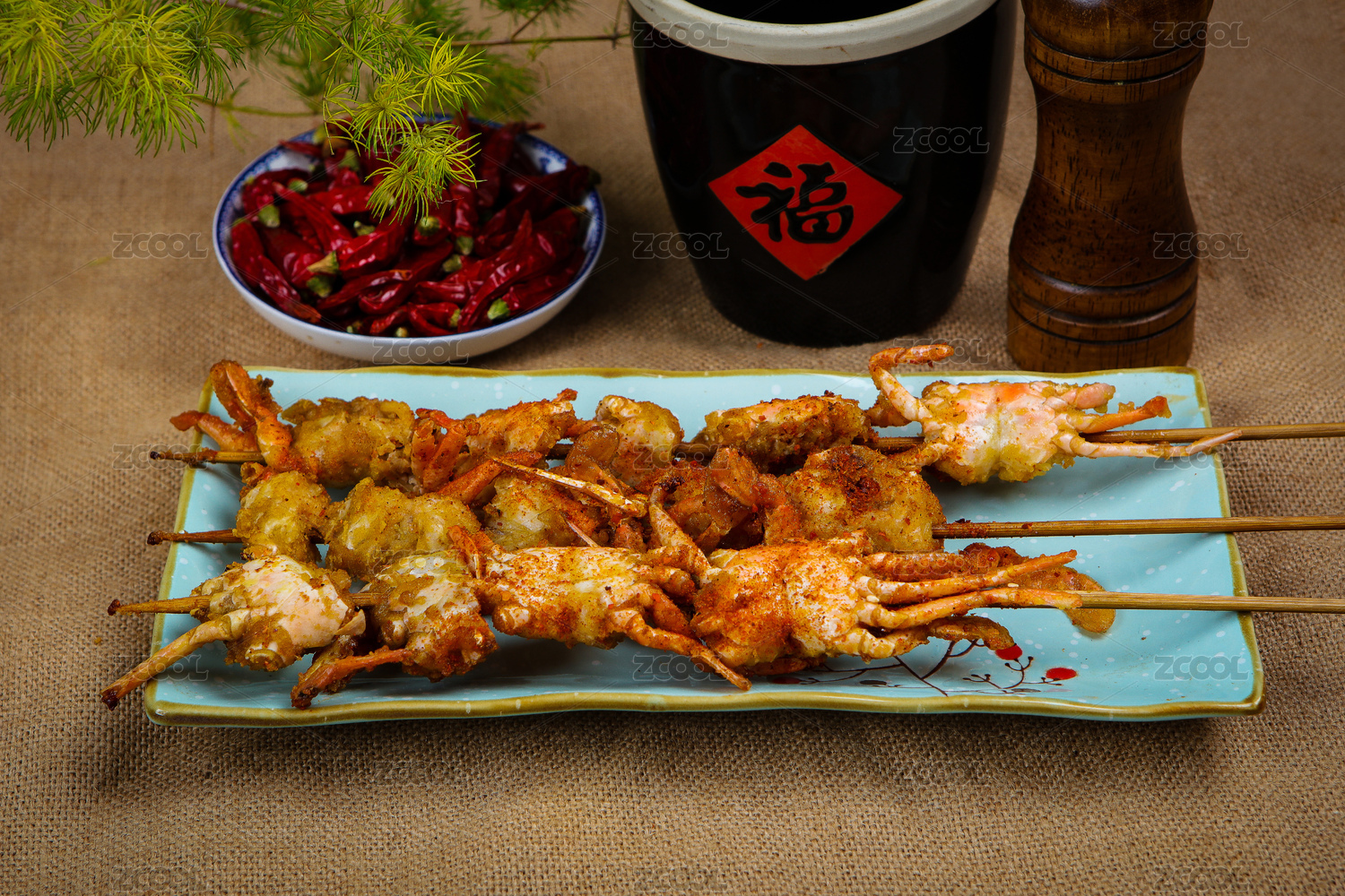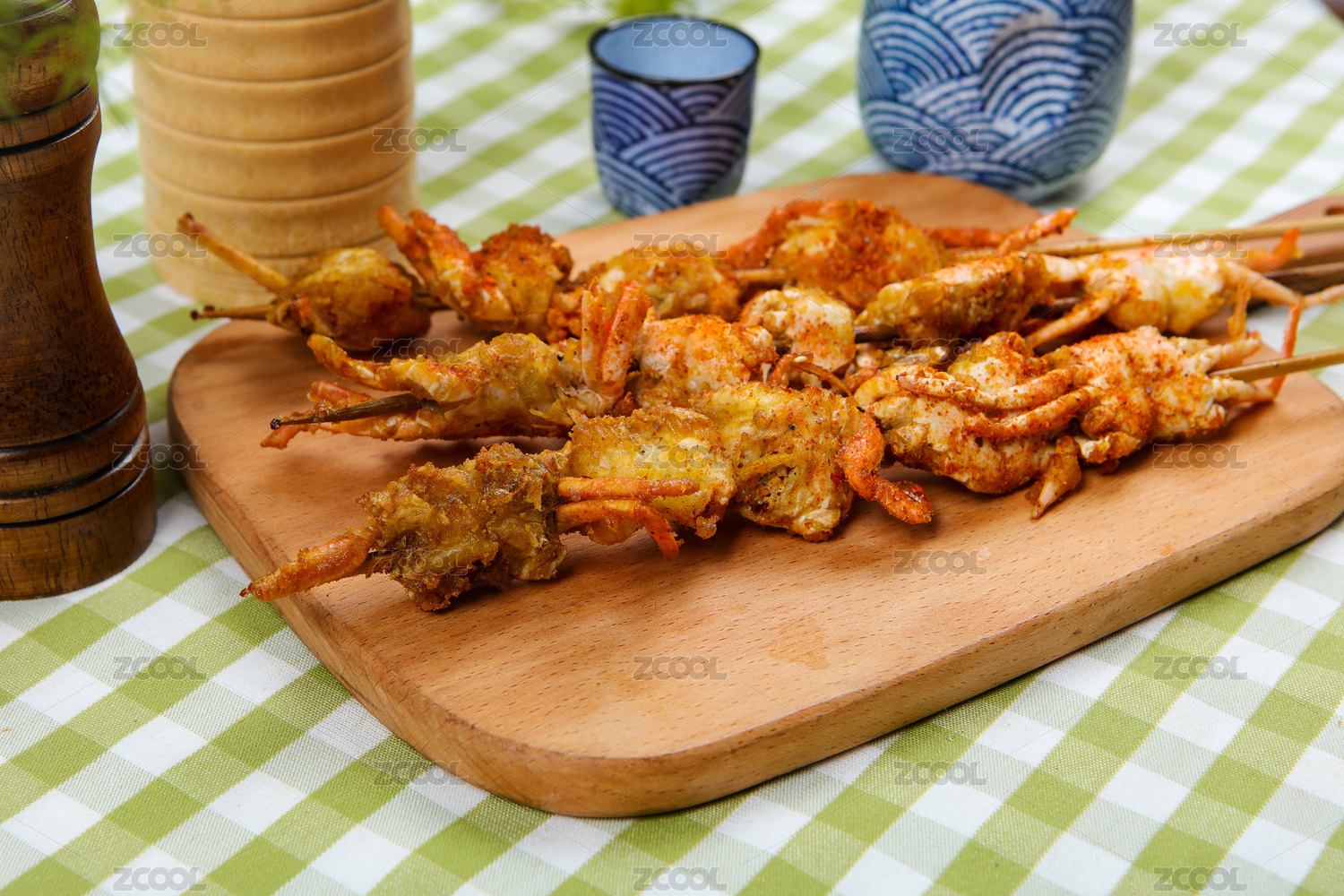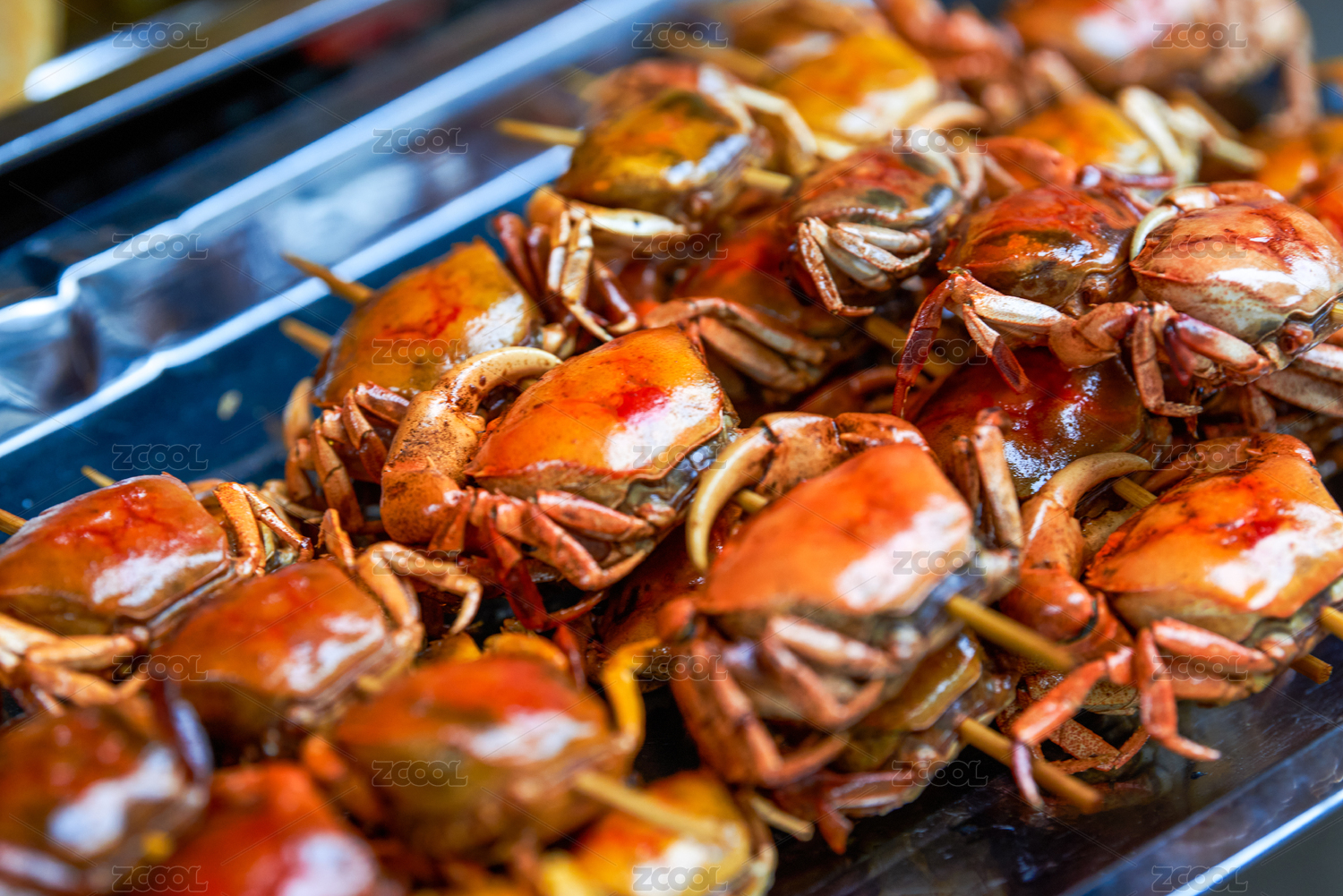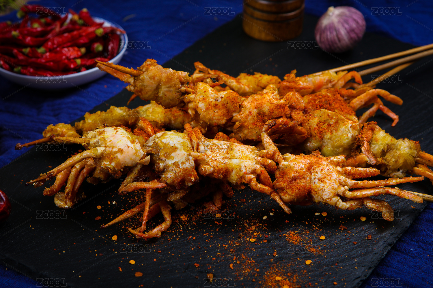 湖南湘西鳳凰古城小吃油炸螃蟹和蝦餅