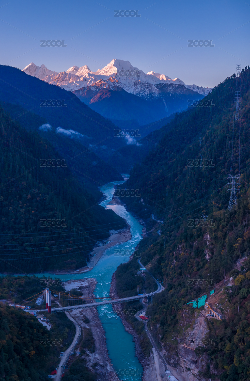 日出中國(guó)西藏林芝雅魯藏布大峽谷雪山