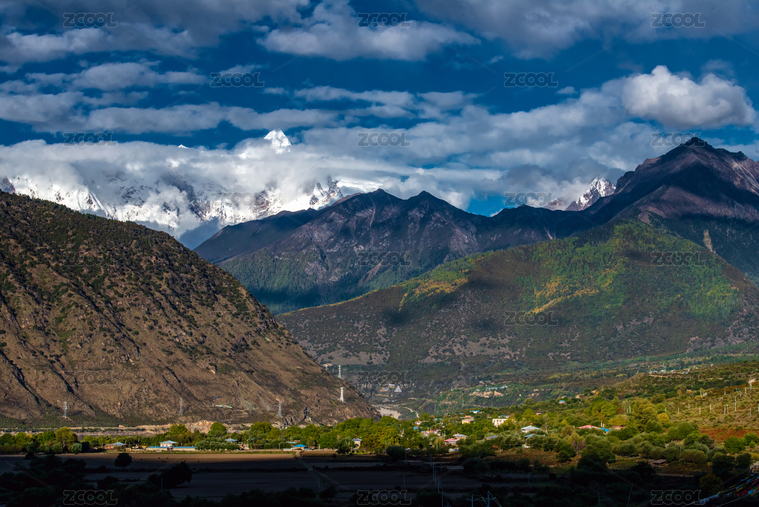中國(guó)西藏自治區(qū)林芝市雅魯藏布大峽谷景區(qū)的南迦巴瓦峰與索松村