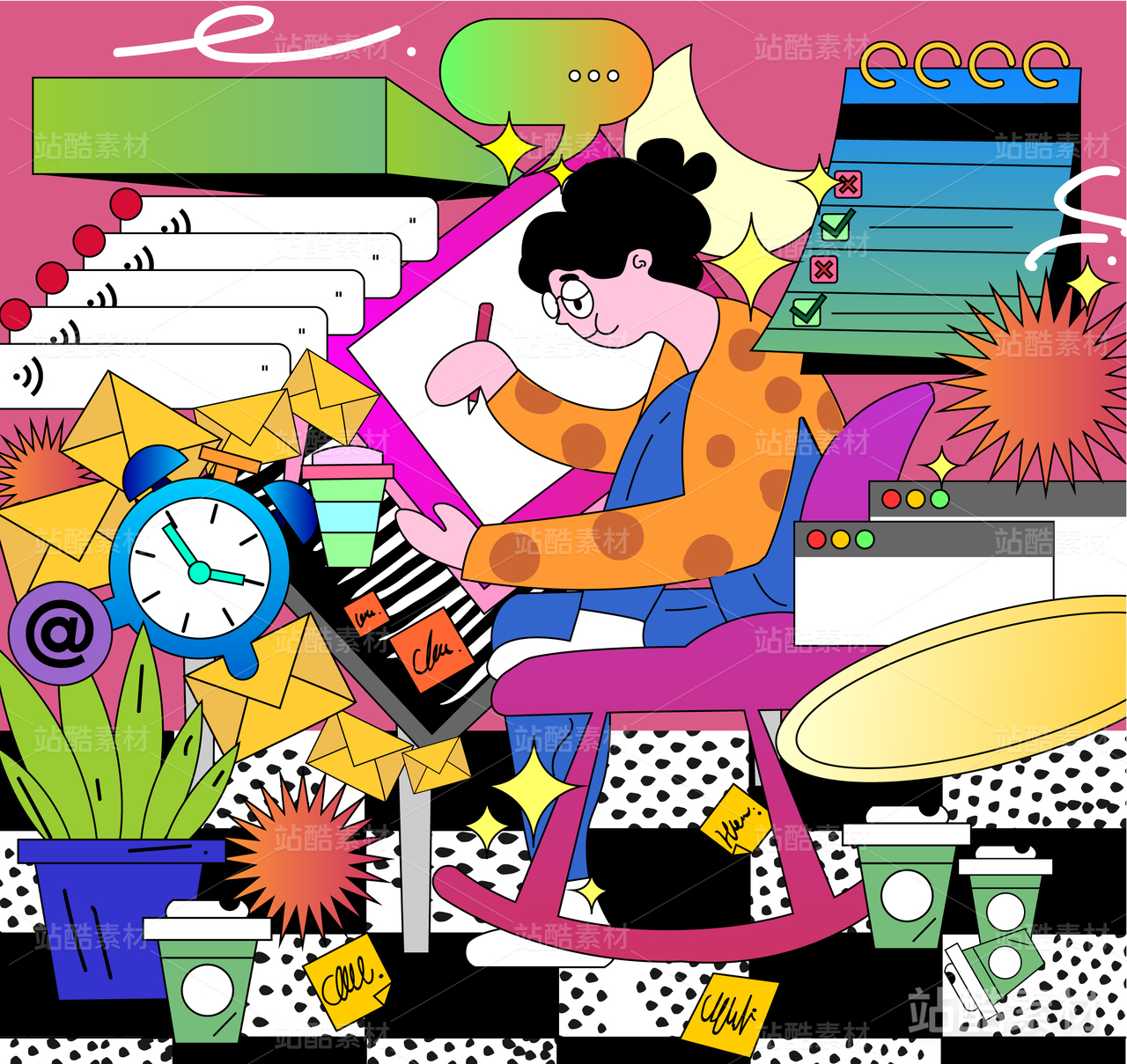 忙碌的工作矢量插畫海報(bào)
