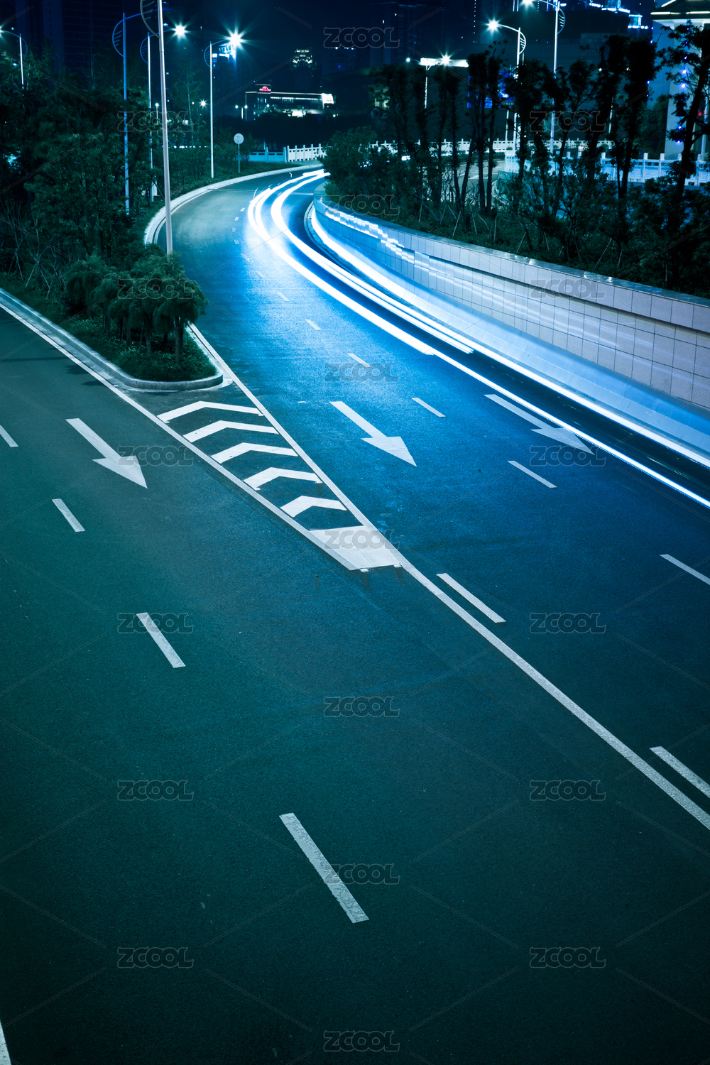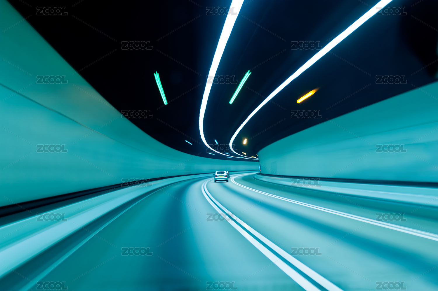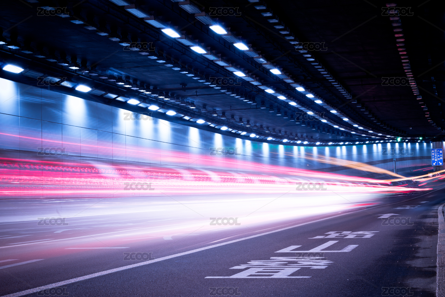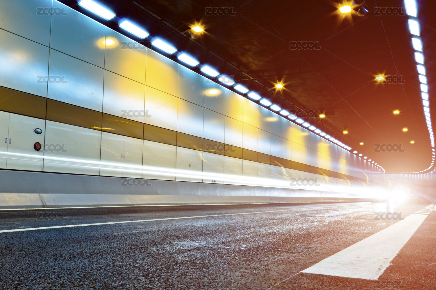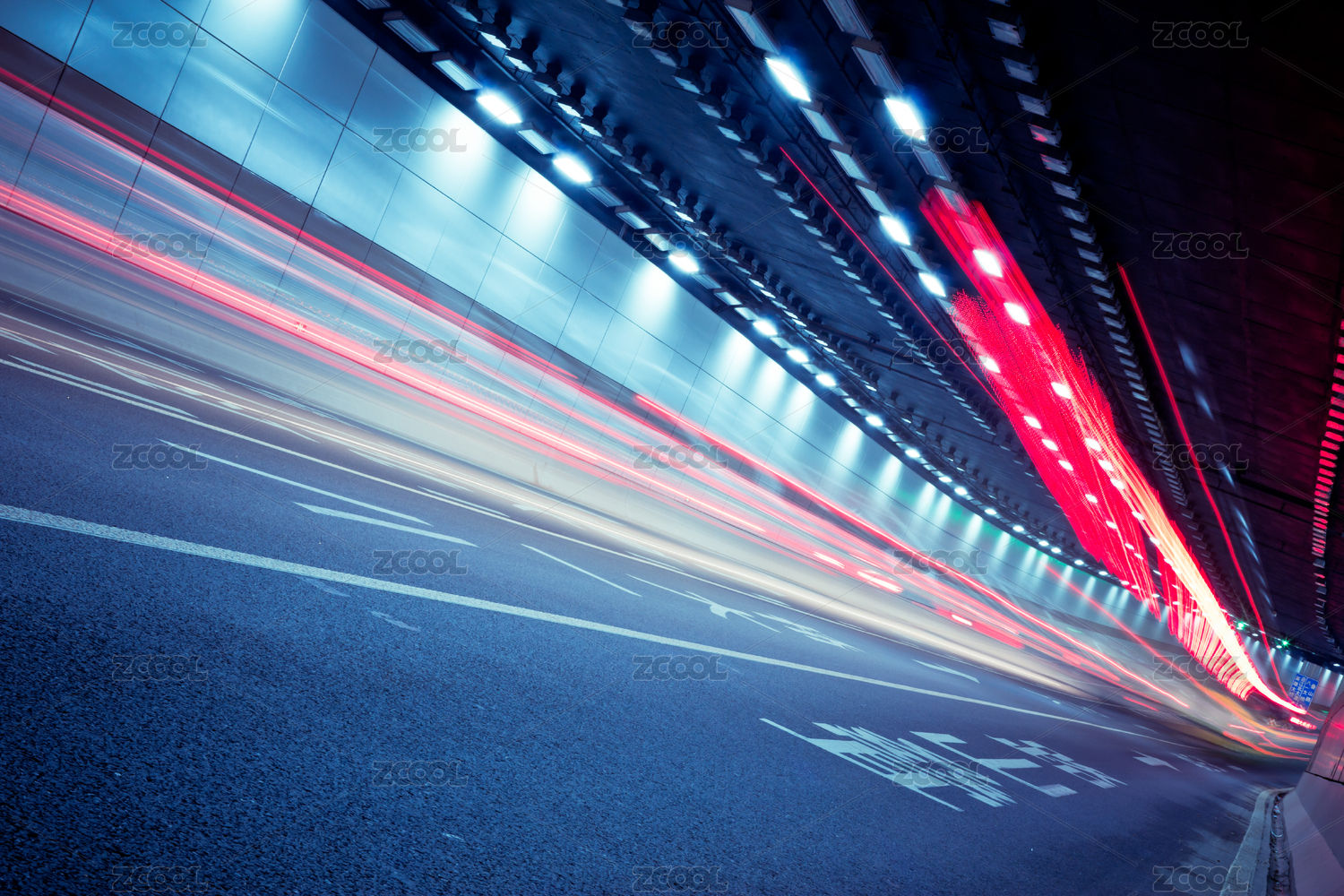 隧道飛馳的汽車尾燈形成的光的軌跡