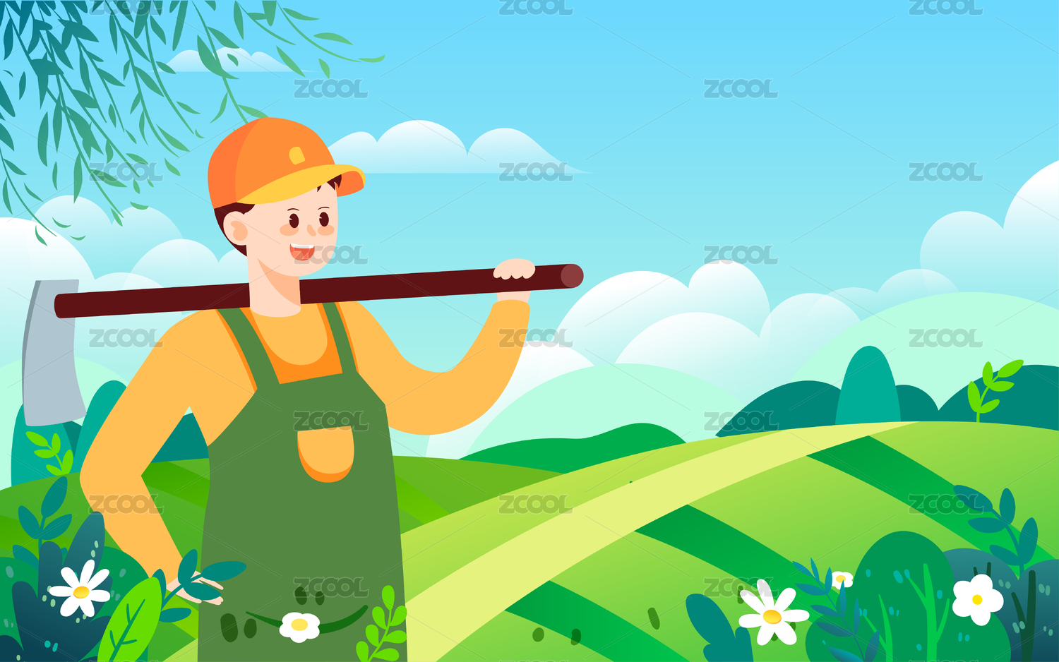 春天農(nóng)忙播種春耕農(nóng)民種植勞動節(jié)大自然插畫