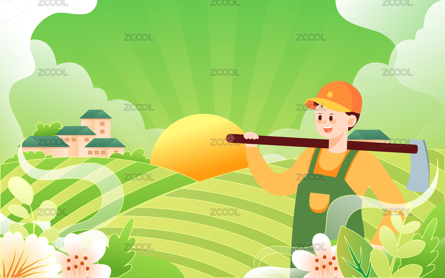 五一勞動節(jié)農(nóng)民春耕農(nóng)忙插畫鄉(xiāng)村三農(nóng)海報(bào)