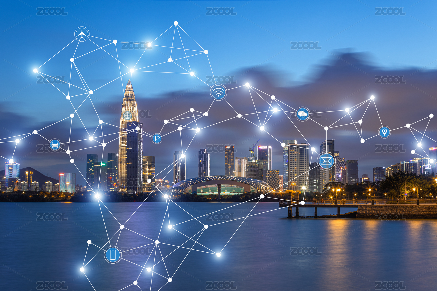 深圳繁榮的城市和繁忙的互聯(lián)網(wǎng)絡(luò)概念