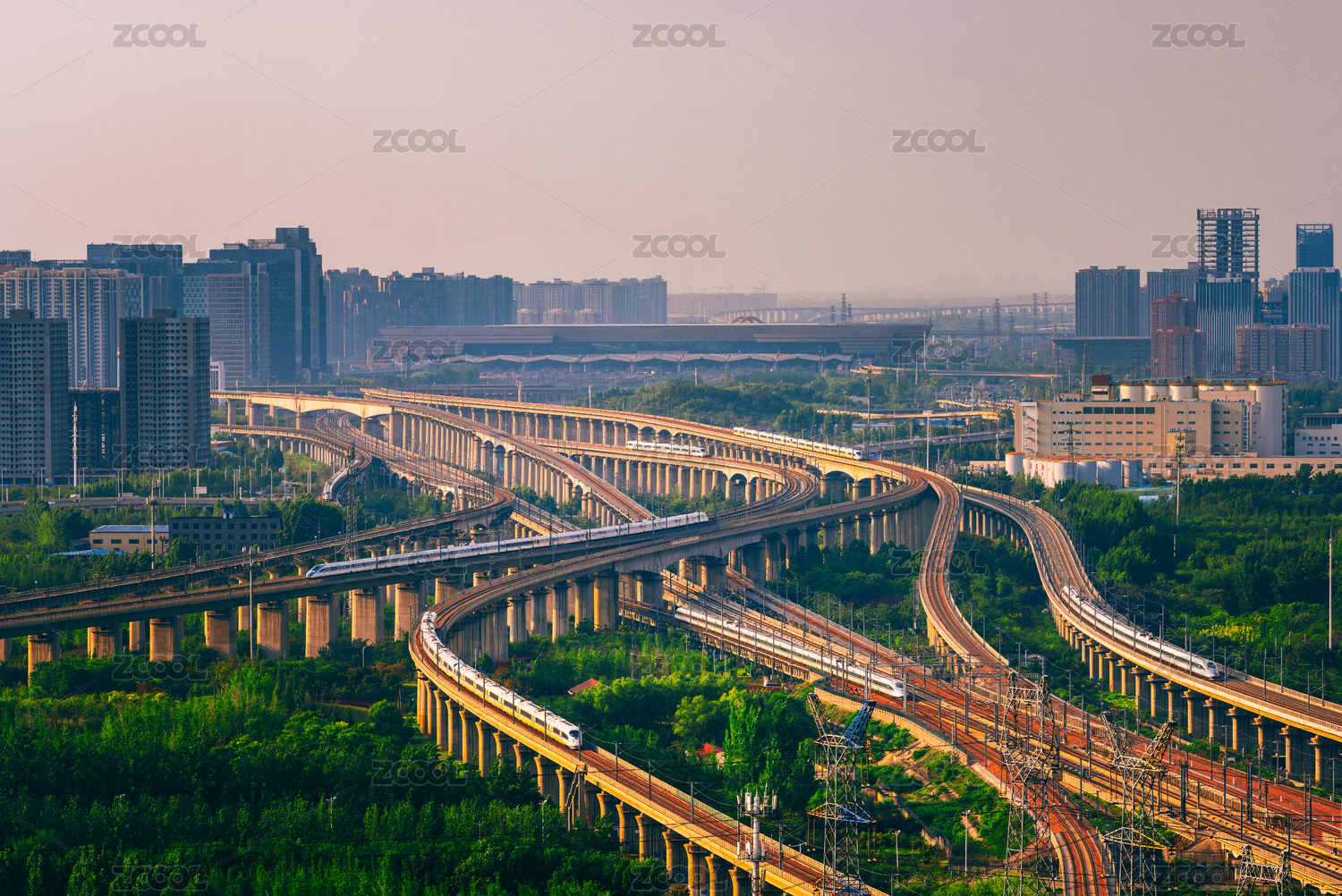 河南鄭州白天鄭州東站繁忙的鐵路高鐵運(yùn)輸場