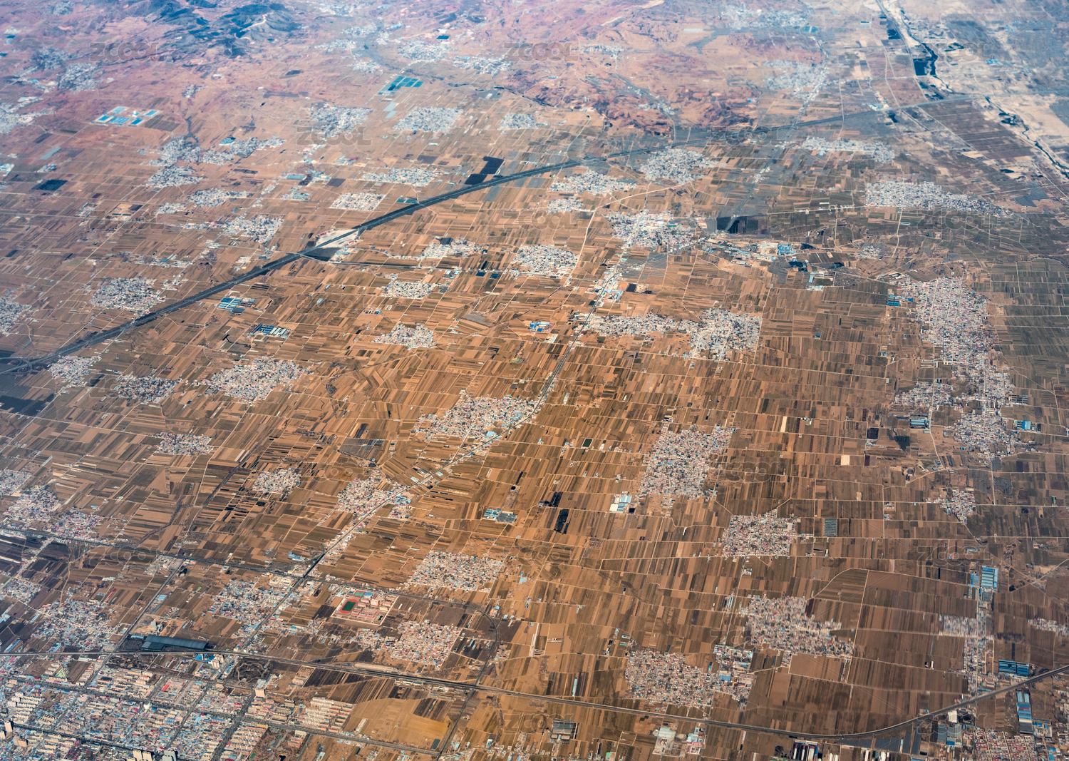 航拍中國華北平原的村鎮(zhèn)和耕地