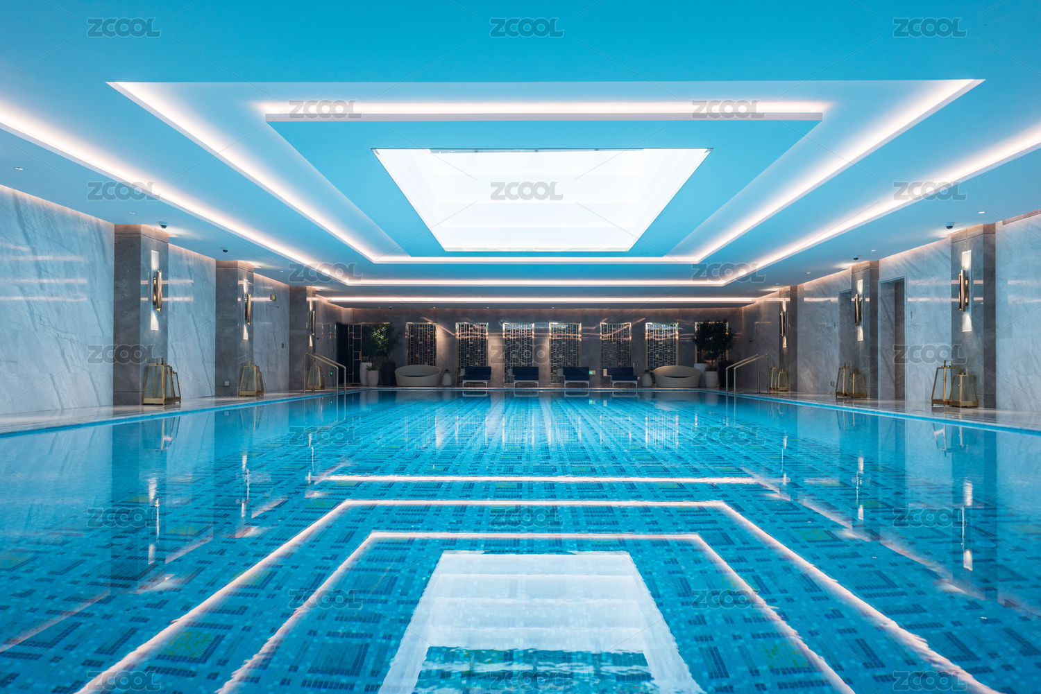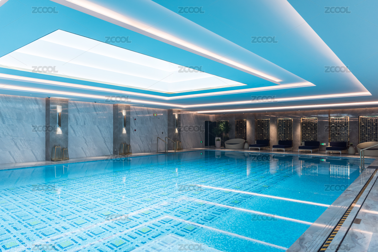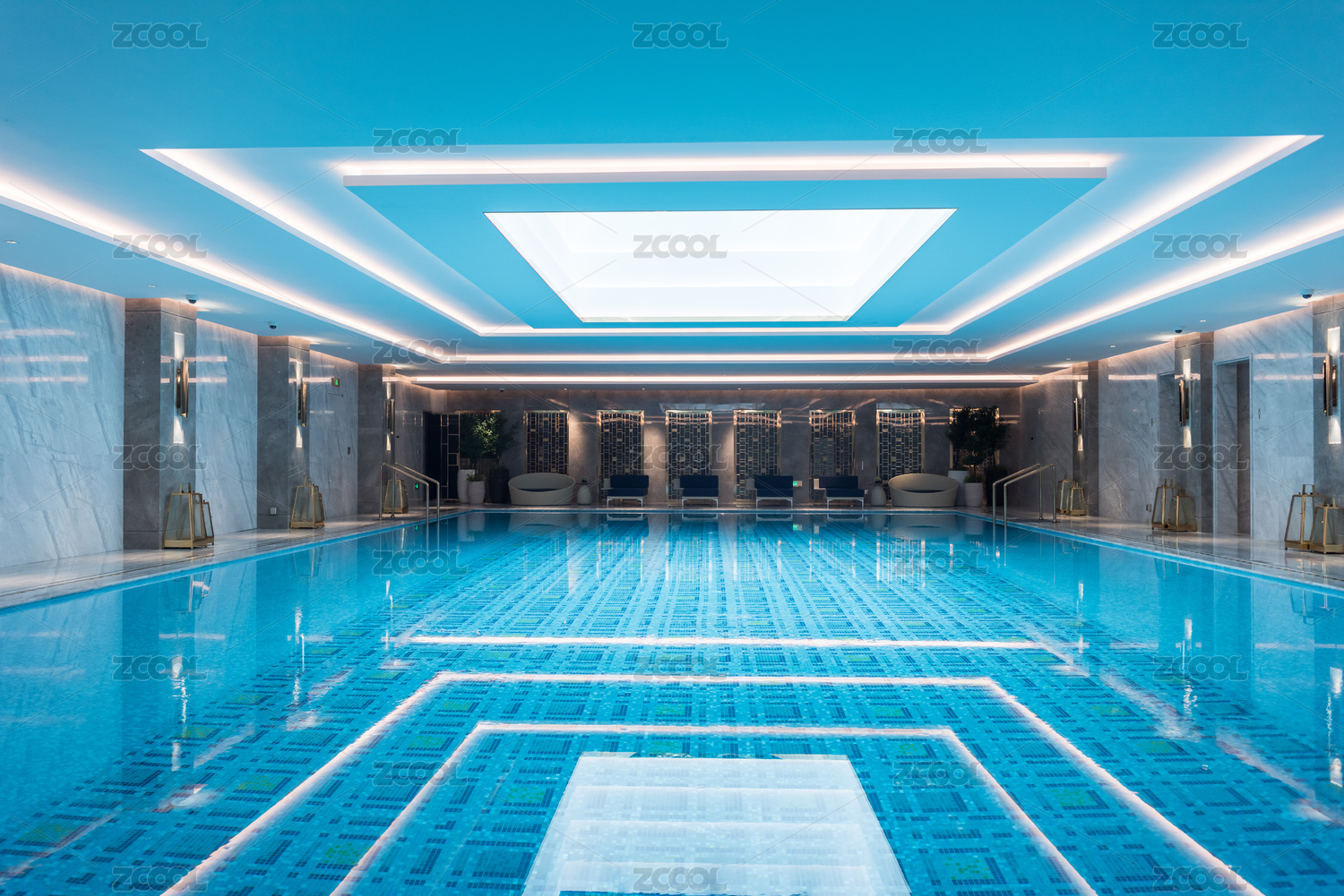 室內(nèi)藍(lán)色奢華的游泳館游泳池