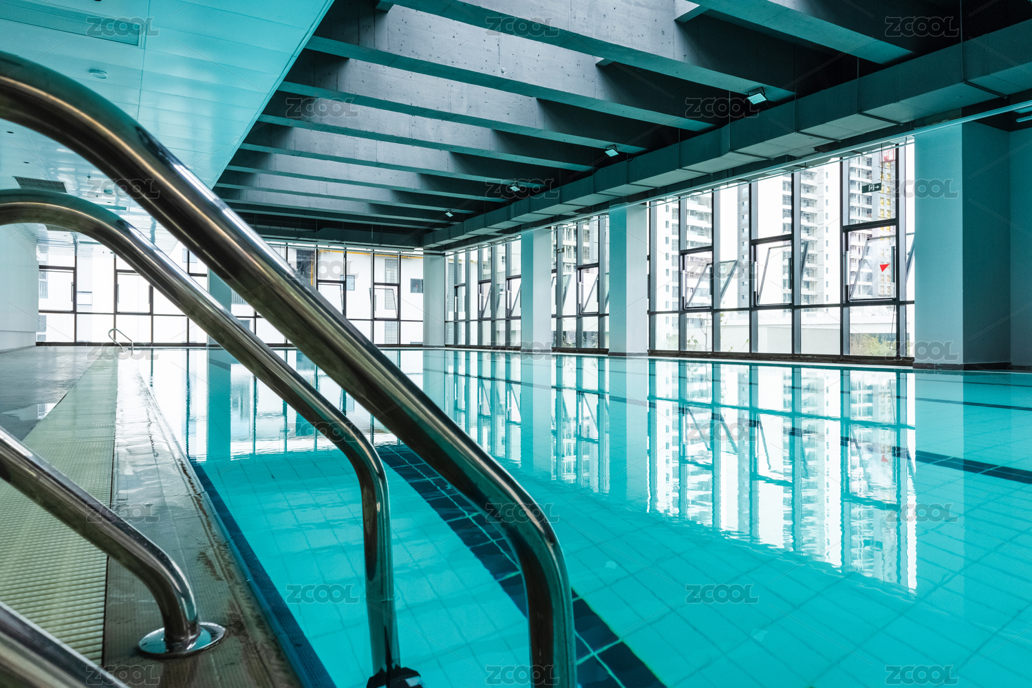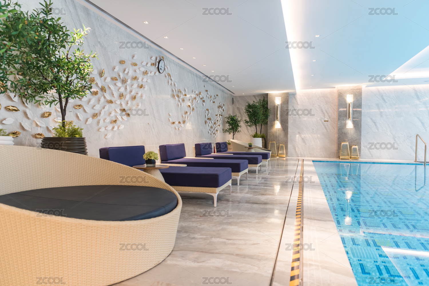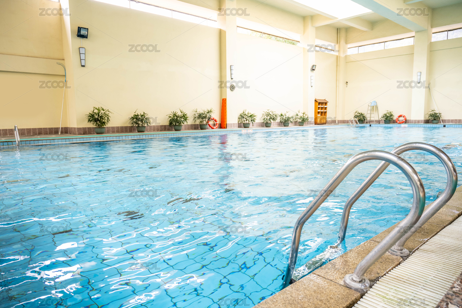 室內(nèi)藍(lán)色奢華的游泳館游泳池