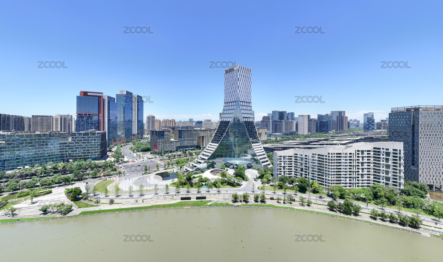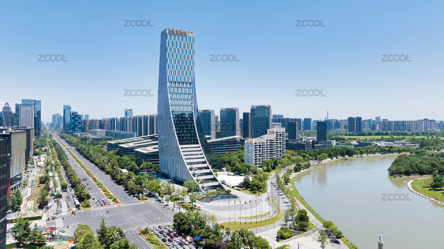 成都高新區(qū)地標建筑中國歐洲中心多角度航拍