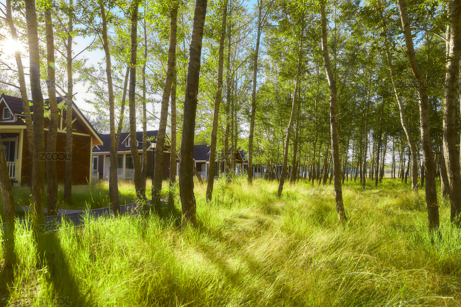 河北沽源庫倫淖而旅游度假村別墅區(qū)森林草地