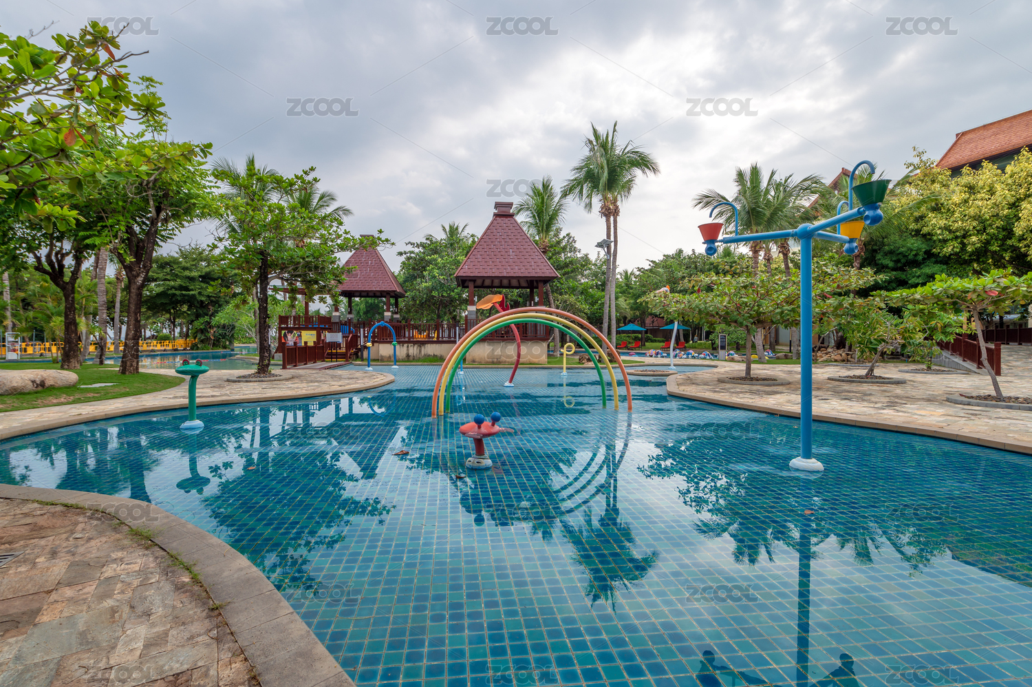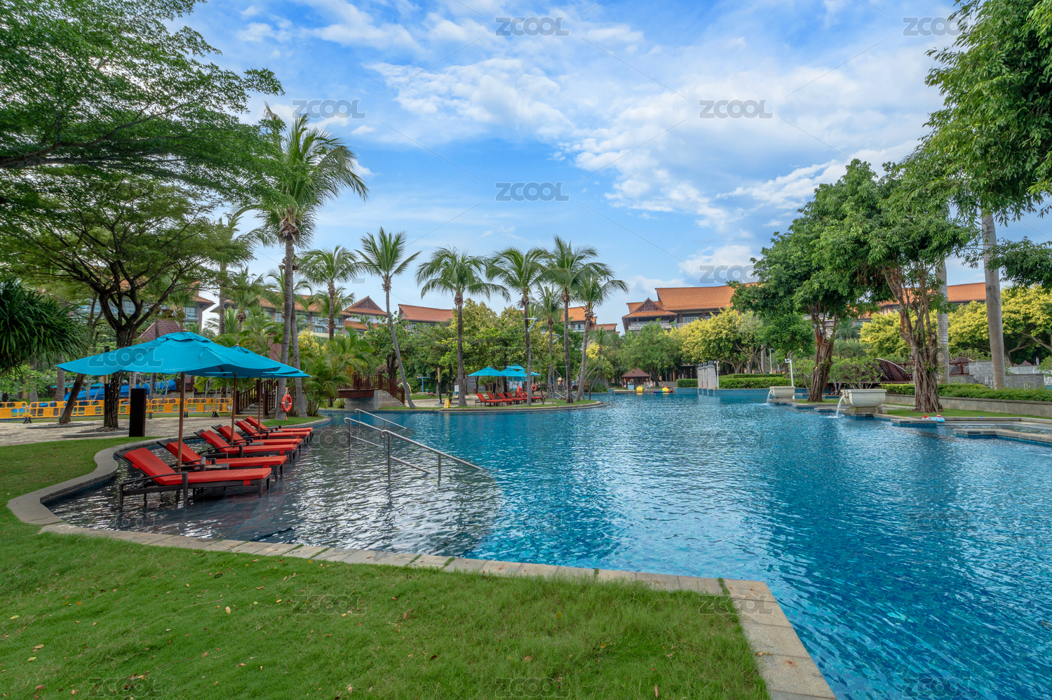 海南三亞旅游度假村的游泳池及酒店大樓