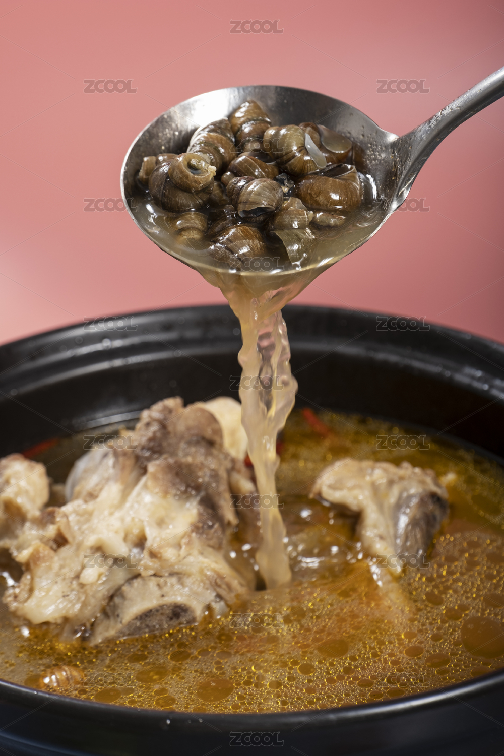 螺螄粉的湯底制作用勺子舀起螺螄