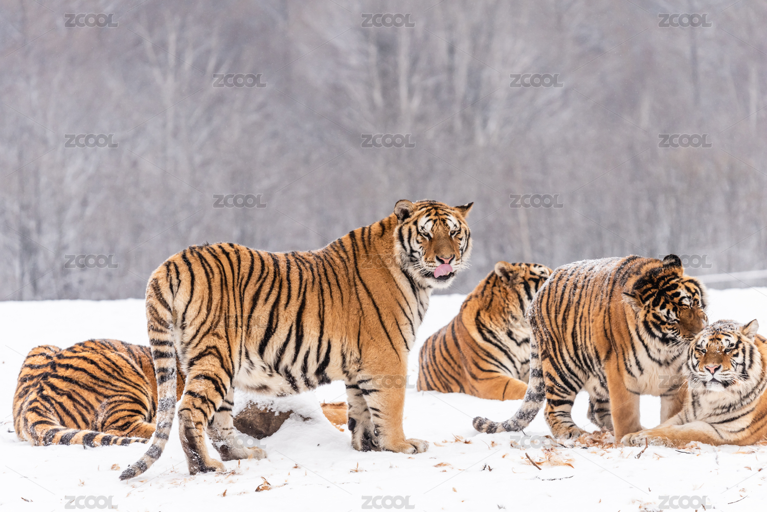 冬天雪后雪地中的老虎東北虎