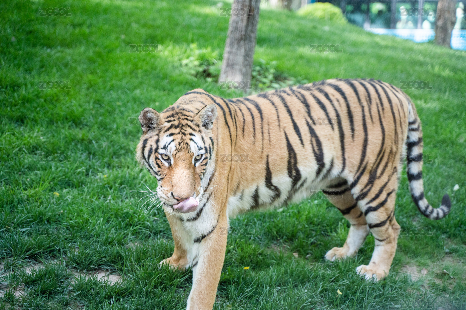 老虎西伯利亞虎在草坪行走