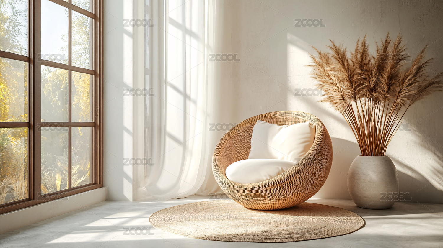 簡(jiǎn)約現(xiàn)代編織藤椅靜謐場(chǎng)景