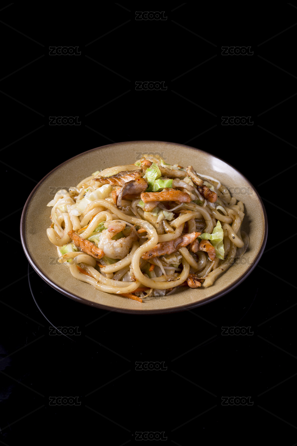 日本料理店里一份美味的肥牛炒拉面