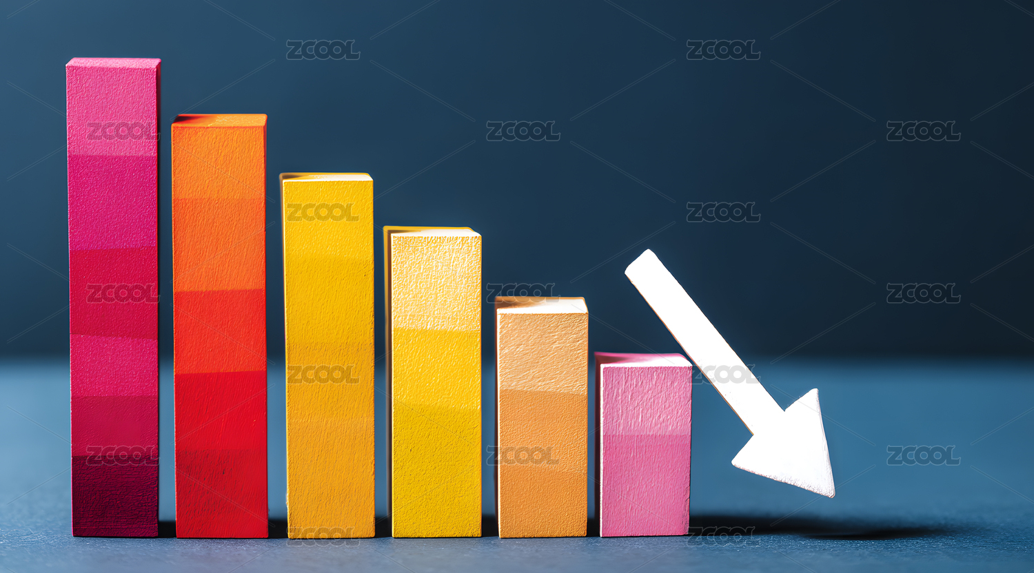 彩色柱狀圖和下降趨勢