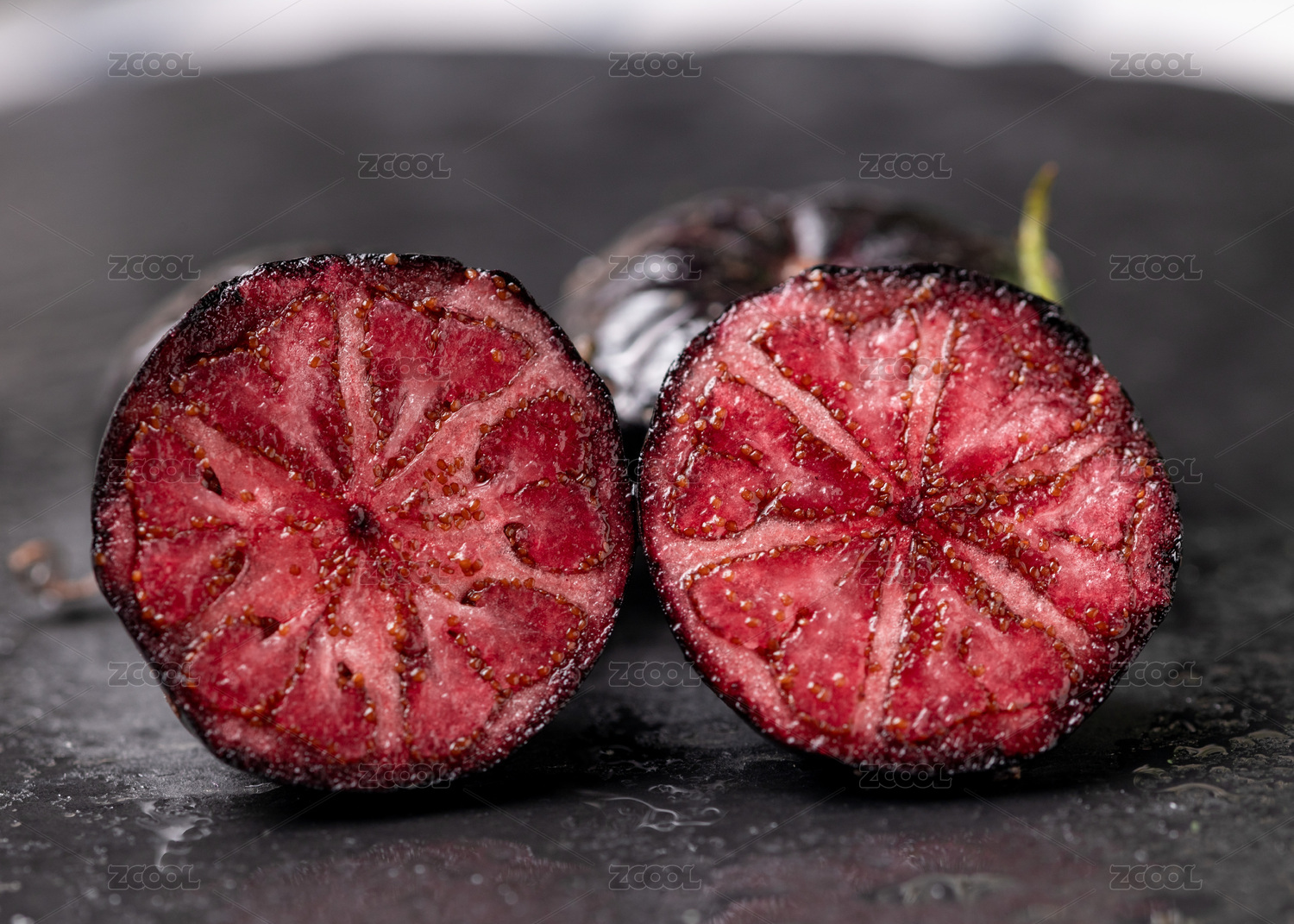 白底上放著紅參果果肉