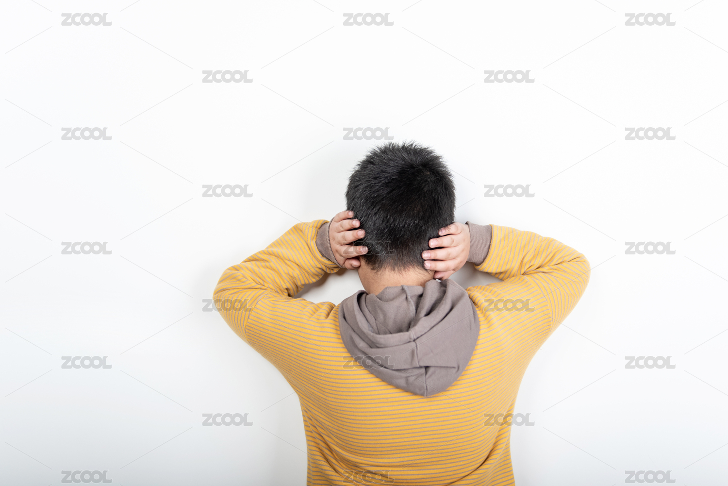 雙手捂住耳朵的兒童背面