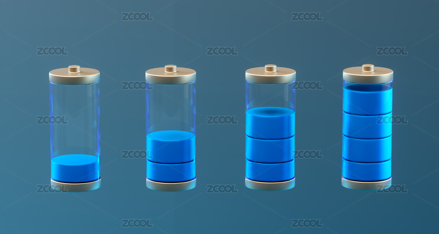 三維渲染不同電量的電池