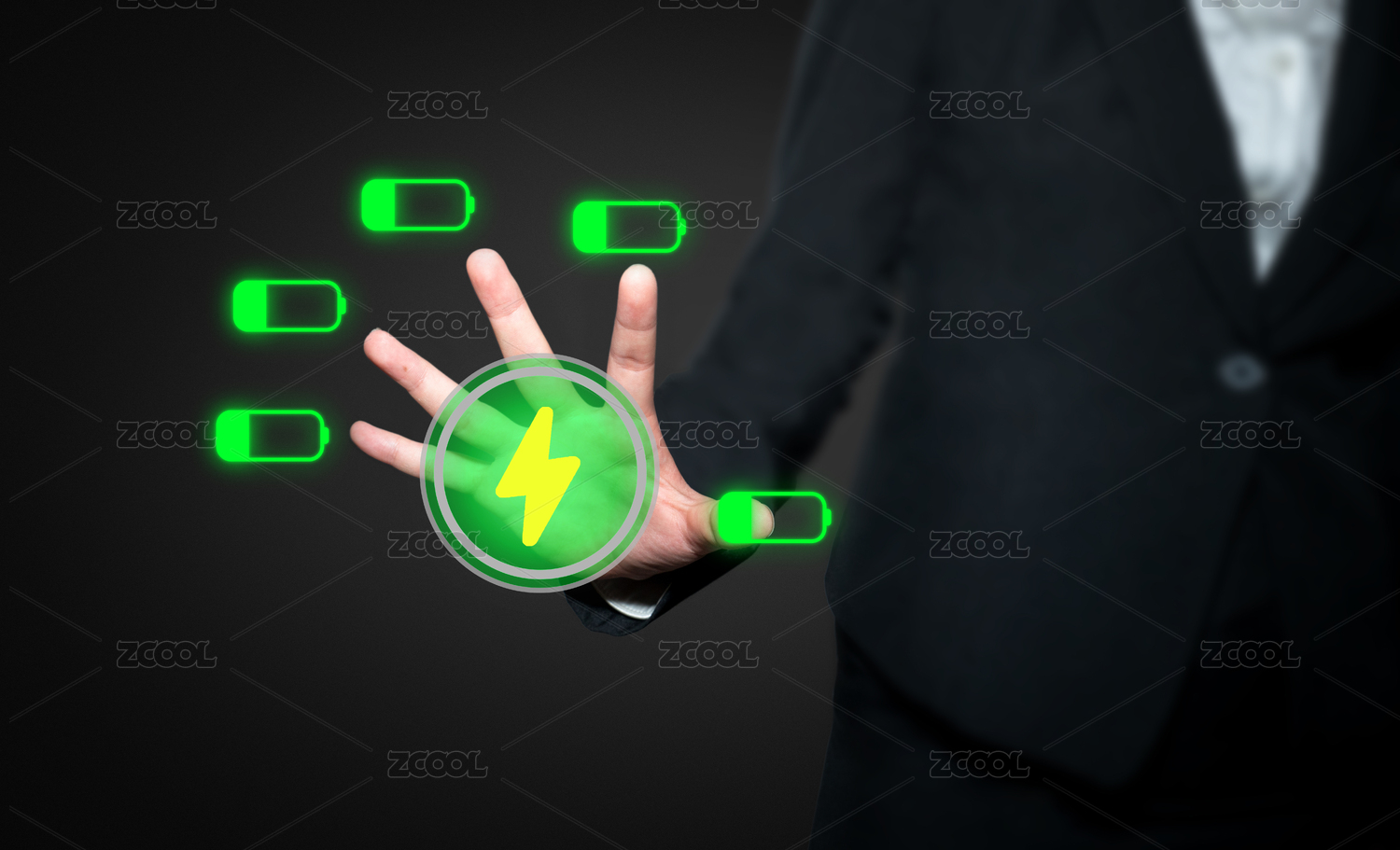商務(wù)人士用手提示電池電量不足電池電量過(guò)低負(fù)能量續(xù)航能力弱概念