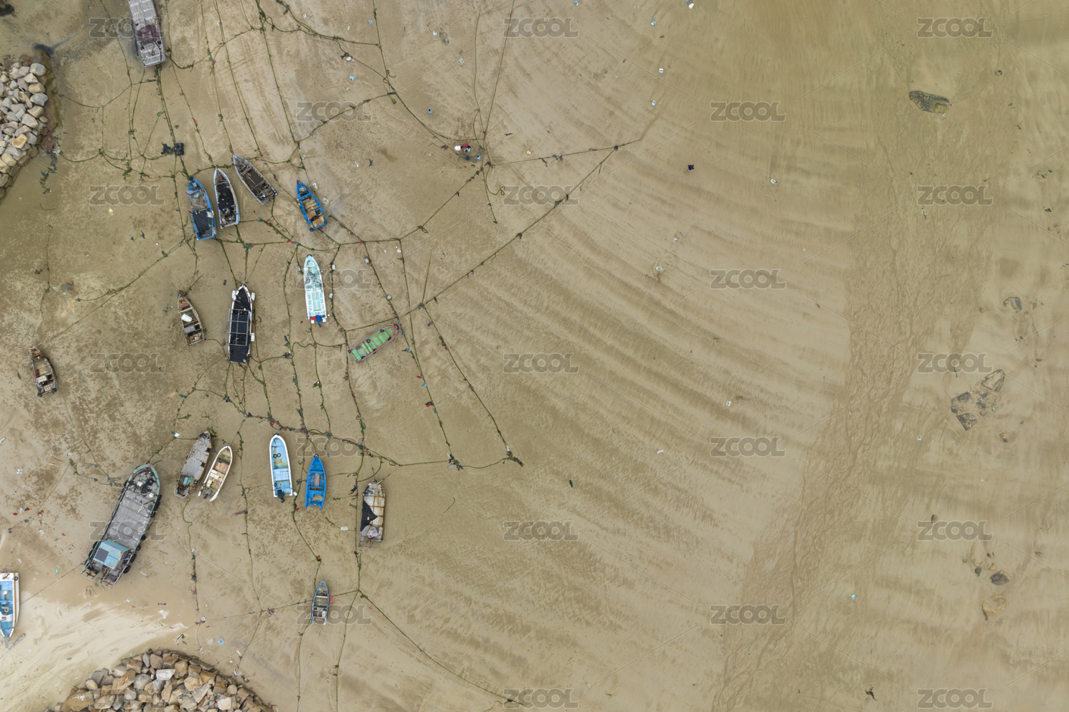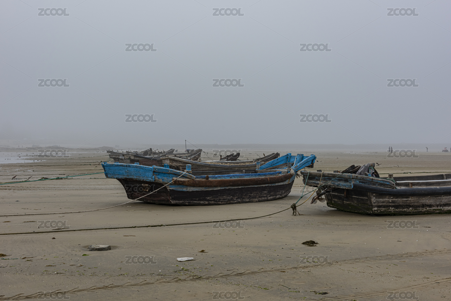 中國福建平潭海灘上的漁船