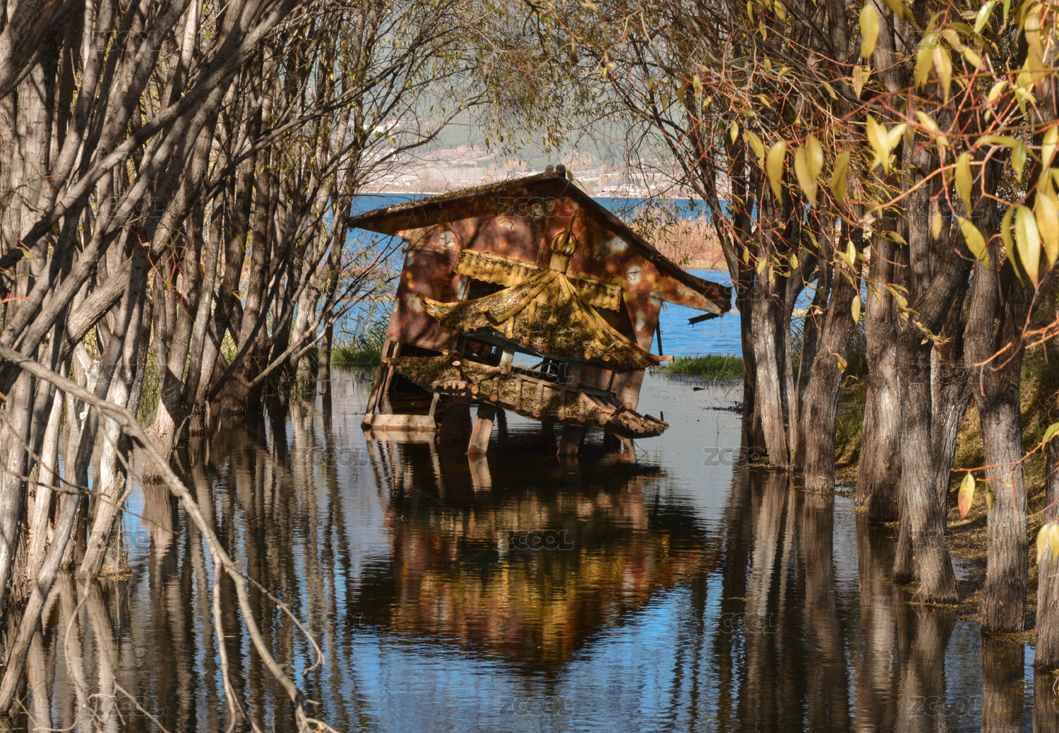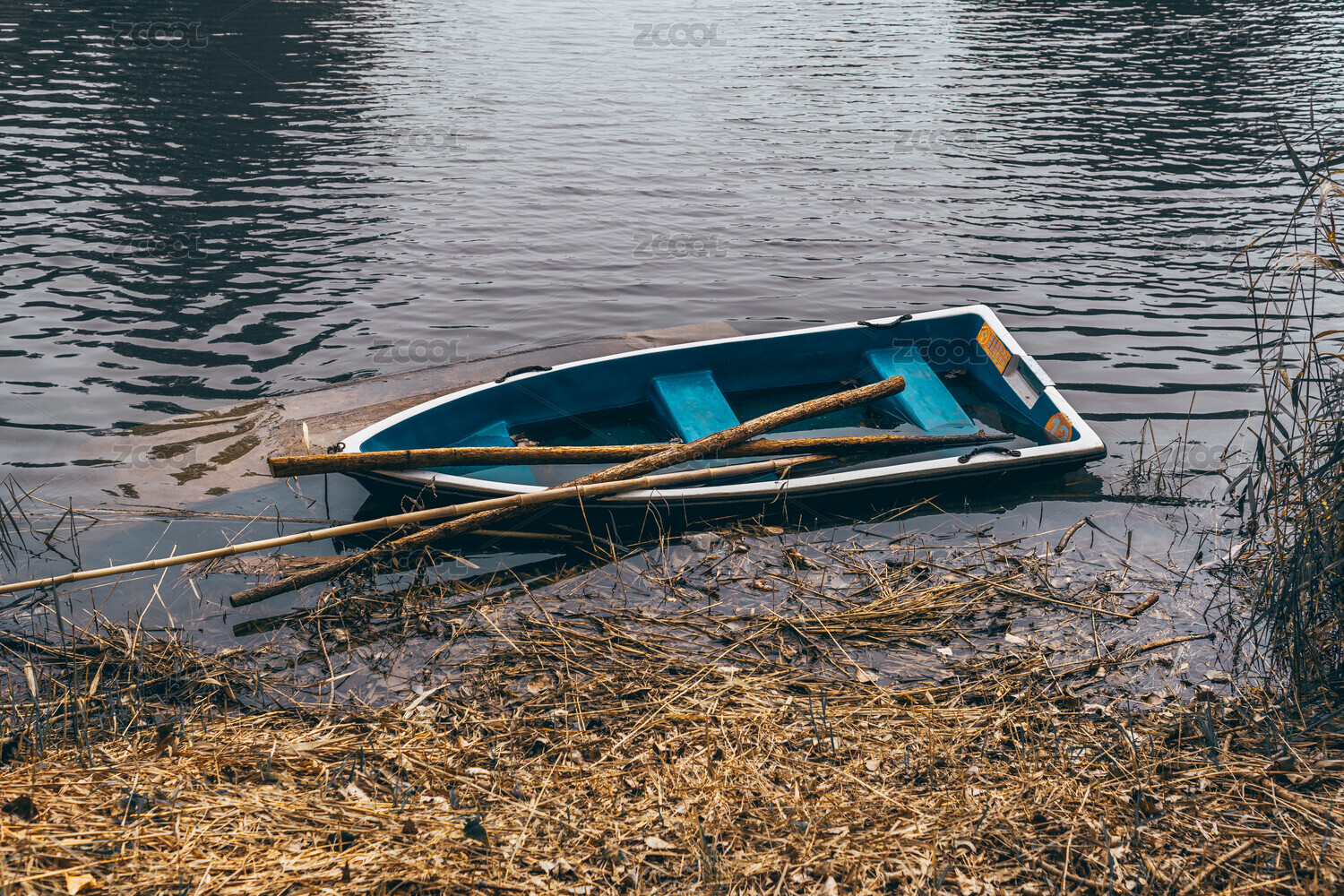 水中擱淺的游船