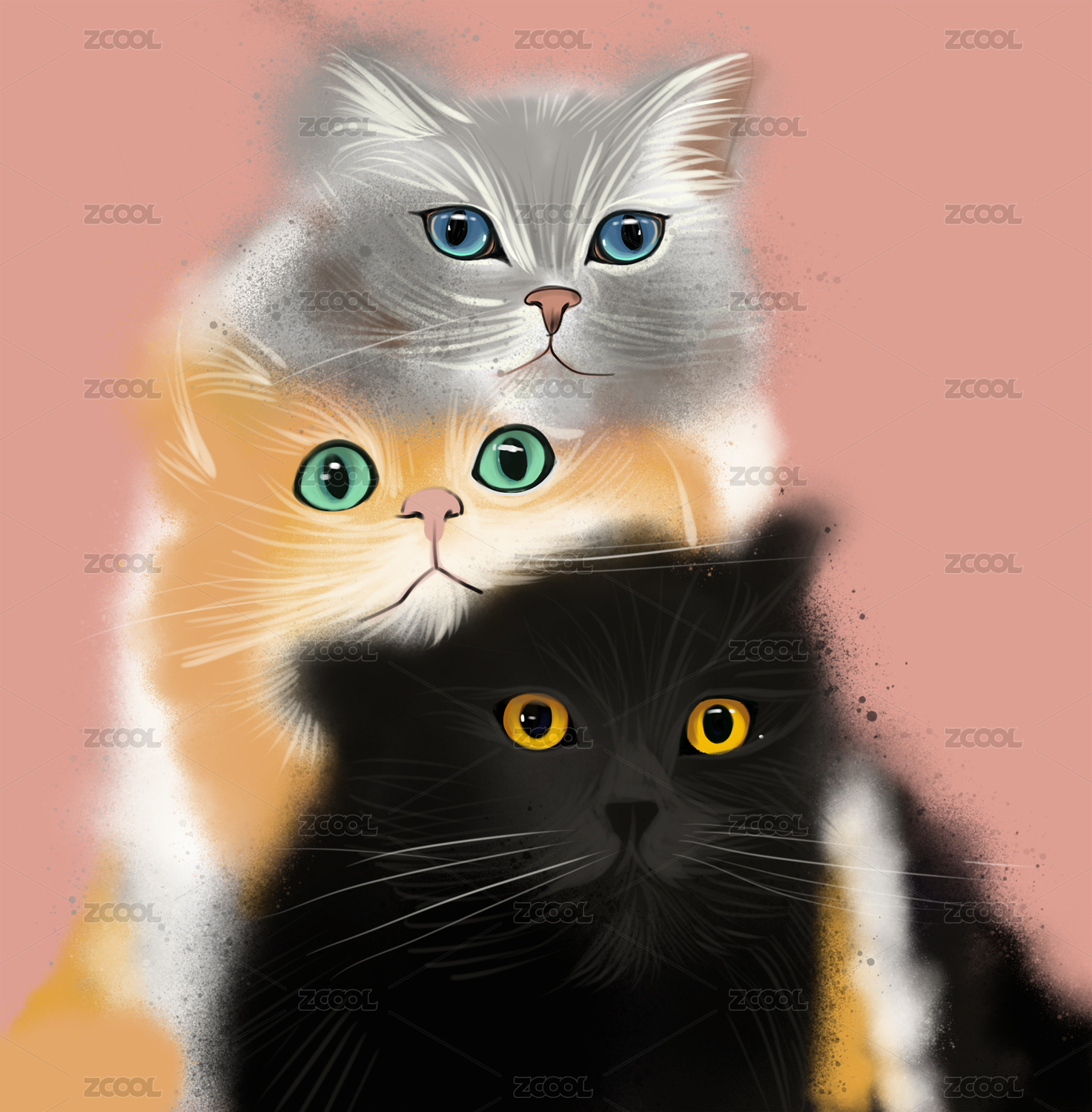 三只可愛的老虎在牌坊前慶祝新春佳節(jié)