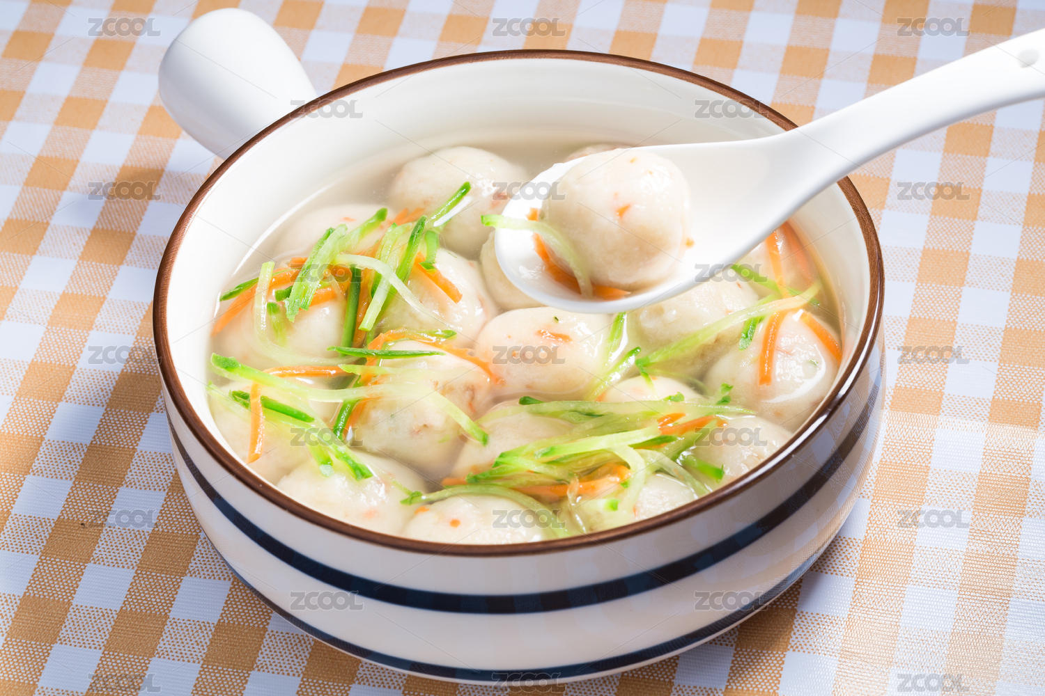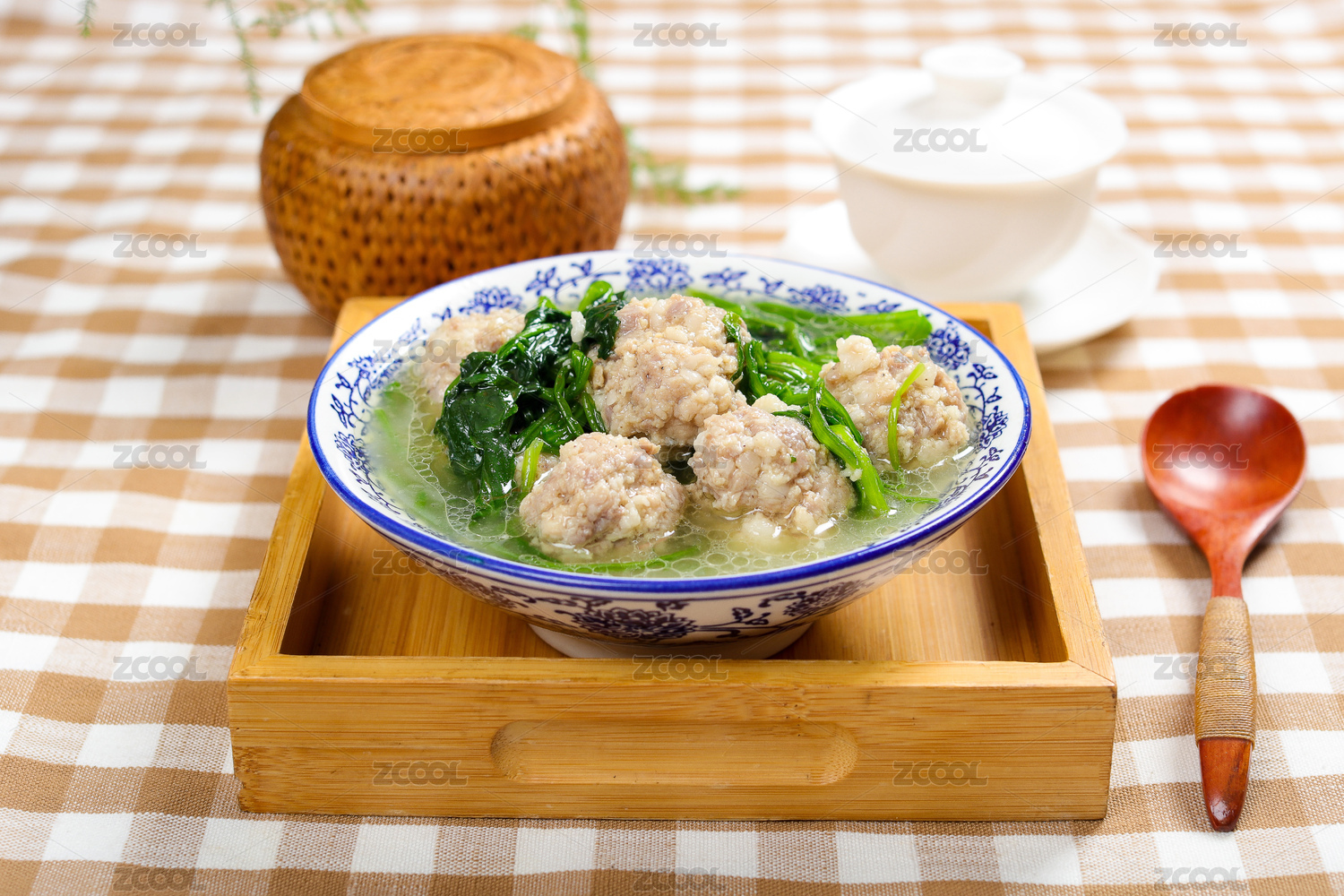 美味湯類菜肴美食豬肉丸菠菜湯