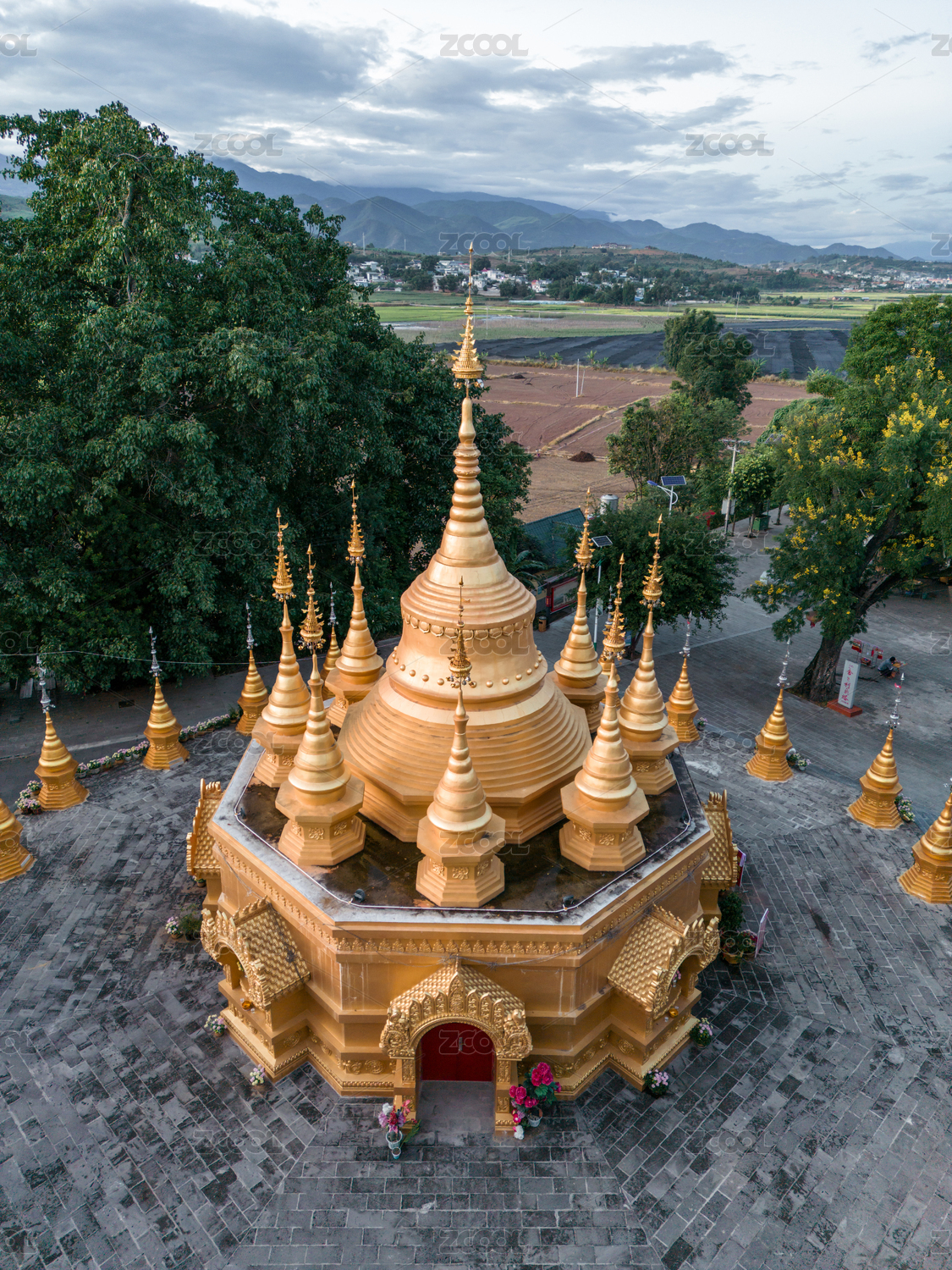 安徽黟縣宏村鎮(zhèn)農(nóng)田中的村舍航拍圖