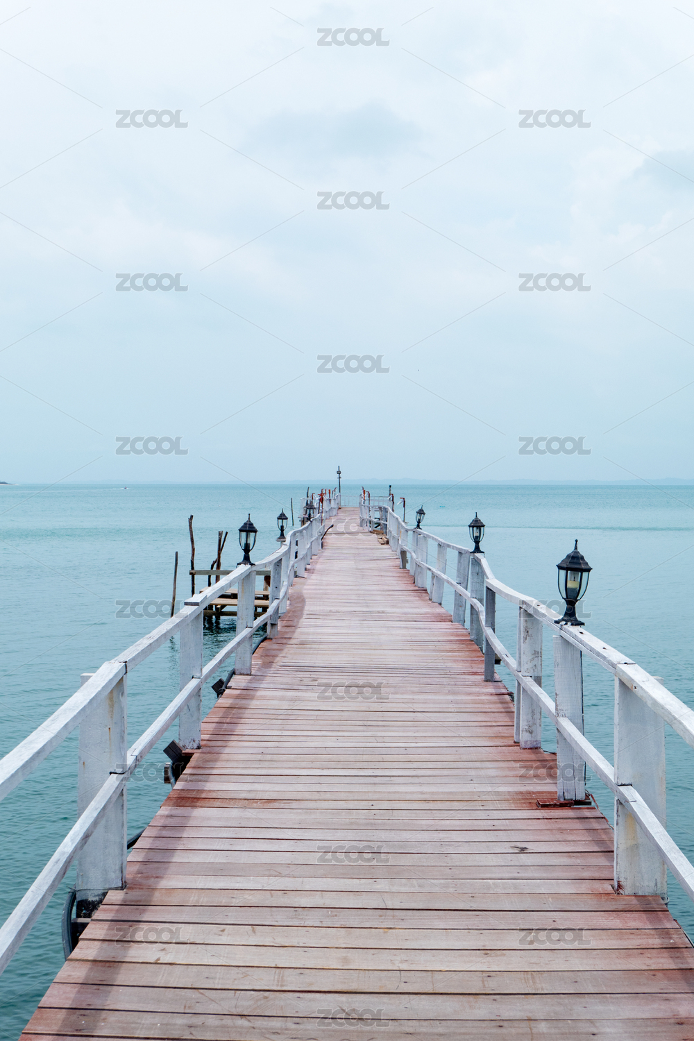 大海邊長(zhǎng)長(zhǎng)的木質(zhì)棧橋碼頭
